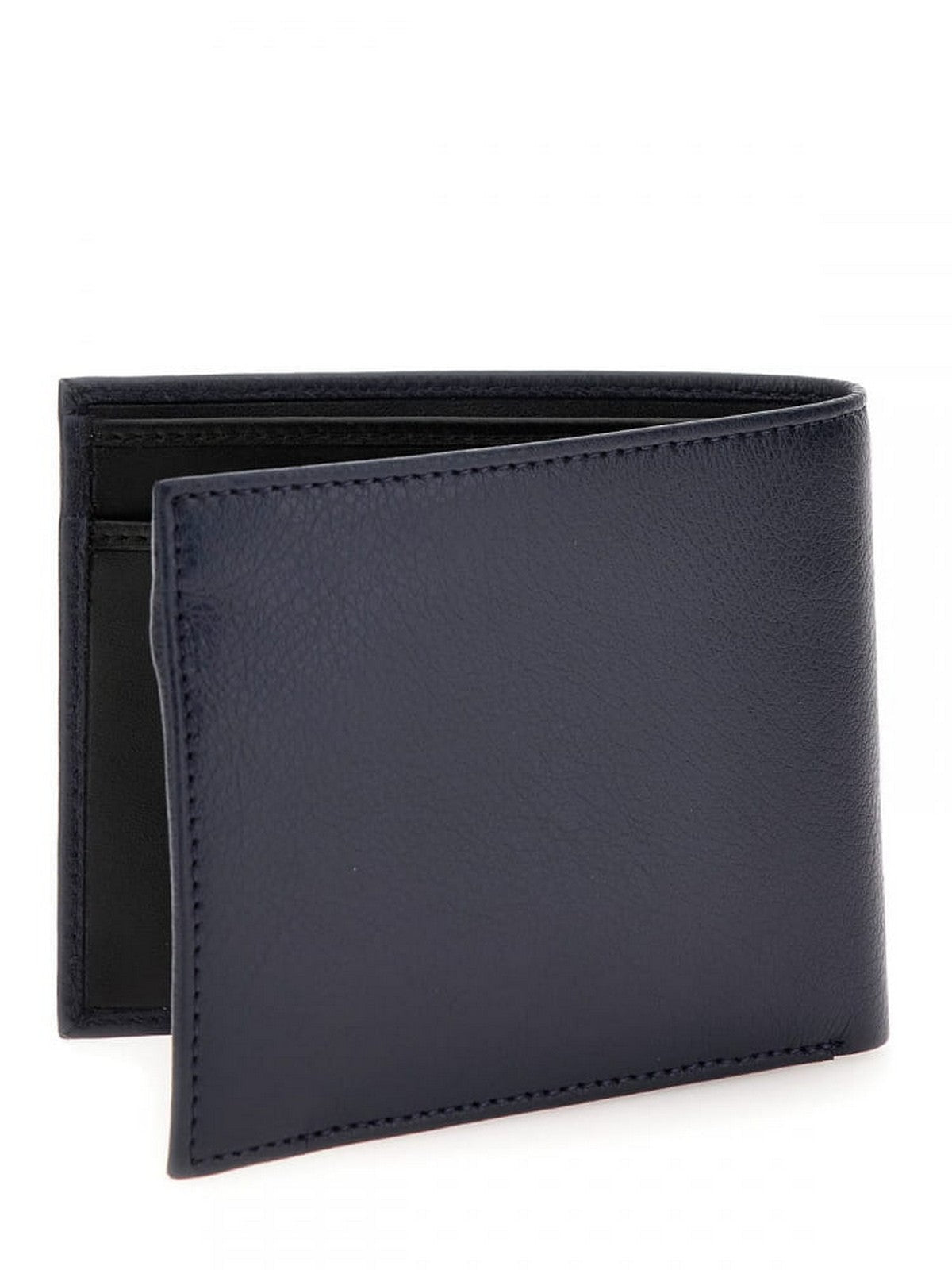 GUESS men's wallet in leather. Contrasting logo lettering. Inside compartment for business cards, documents and banknotes. Coin compartment with closure.