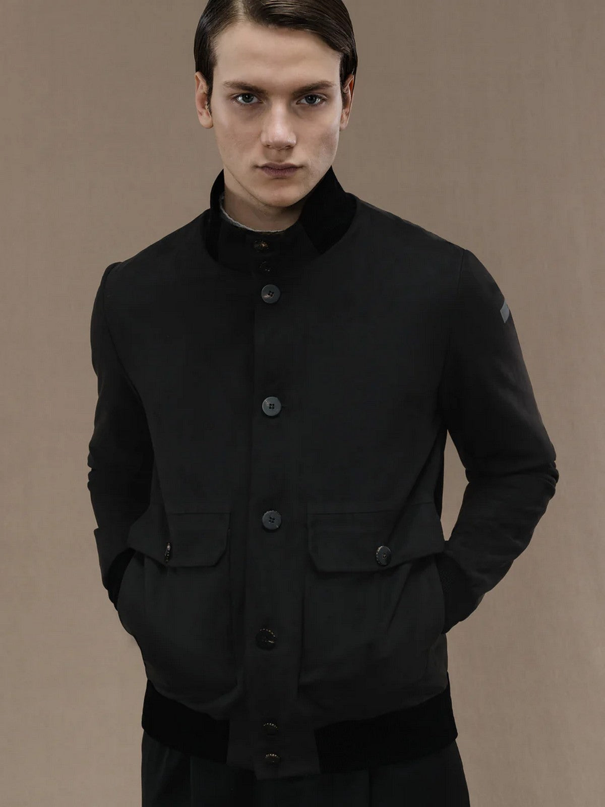 RRD men's jacket in eco suede technical fabric with nubuck effect, black.