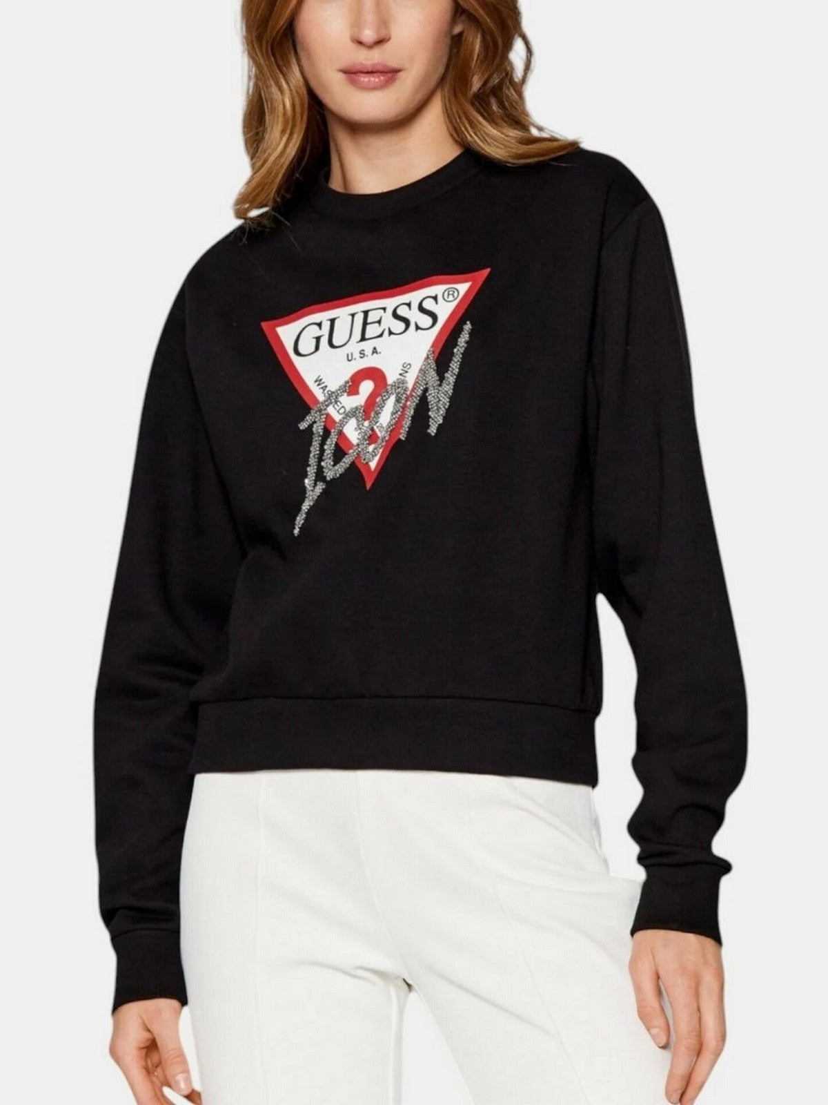 GUESS Women's Sweatshirt CN LOVE TRIANGLE SWEATSHIRT W5RQ04 KB683 JBLK Black