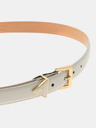 ? Chiusura con fibbia e ardiglione con dettaglio triangolo logo.