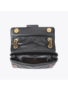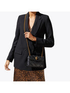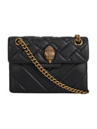 The KURT GEIGER Mini Kensington bag is crafted from soft lambskin with a combination of textured and zigzag stitching. The antiqued brass eagle head features matte brass crystals and black beaded eyes on the front flap.
