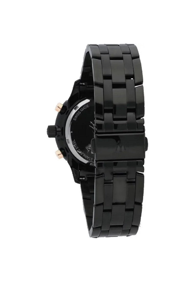 Discover the irresistible charm of the men's chronograph watch from the Maserati Attrazione collection. This extraordinary model, with reference R8873626001, embodies a bold and distinctive style. Crafted from high-quality materials, the watch features a steel and black PVD case, which gives it an elegant and sophisticated look. The eye-catching dial houses a MVT. Ronda 3540 6H/Aig.1/Date 3H type movement, ensuring absolute precision. The black metal strap integrates perfectly with the case, adding a touch of refinement. With a size of 43 mm, the case fits perfectly on the male wrist, offering optimal comfort. The Maserati Attrazione chronograph watch is the perfect companion for men who want to express their unique style and passion for innovation. Add a touch of elegance to your look by wearing this exclusive Maserati timepiece.