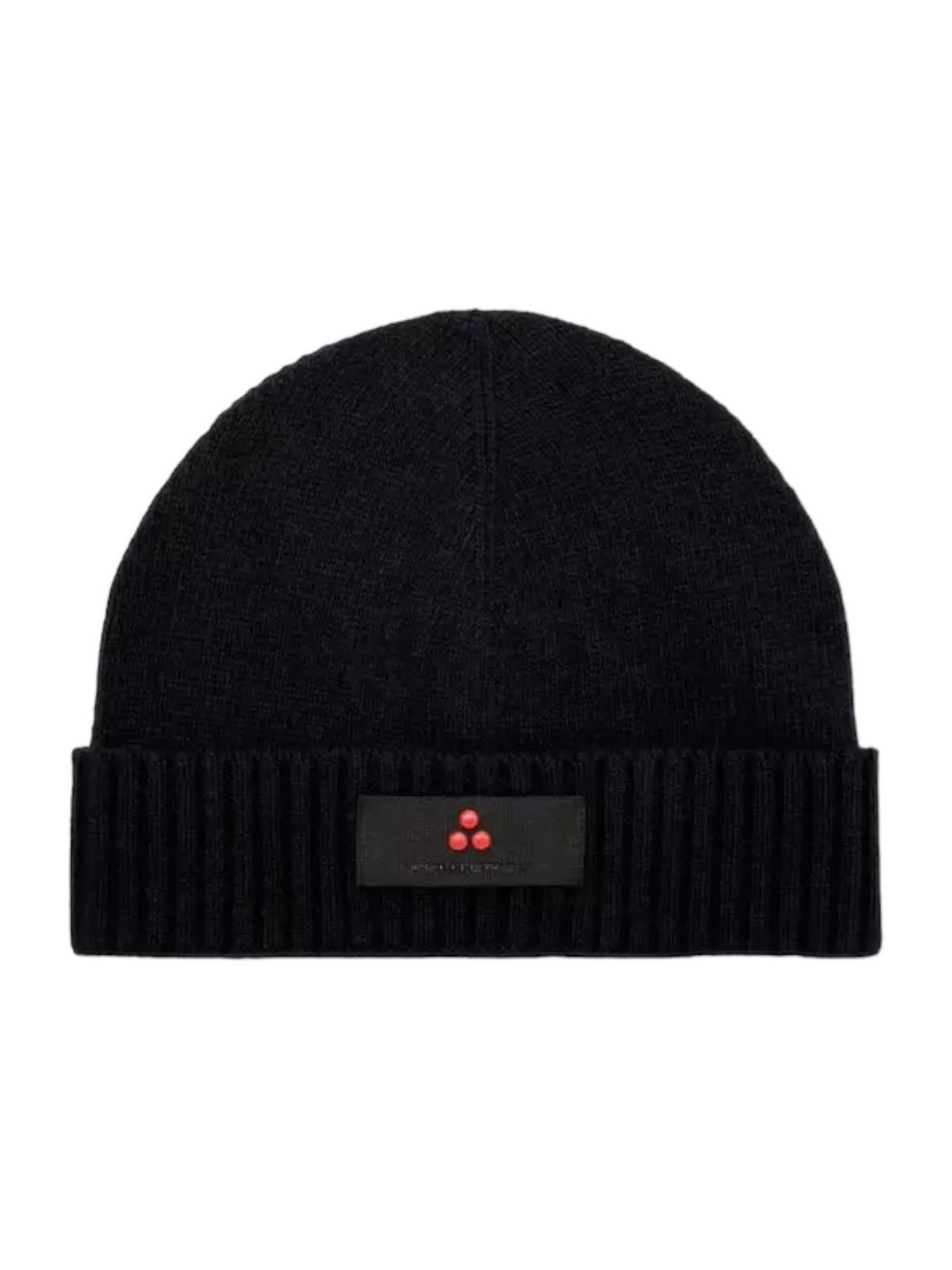 PEUTEREY beanie hat in wool blend tricot, in solid color with knitted cuff and logo tag.