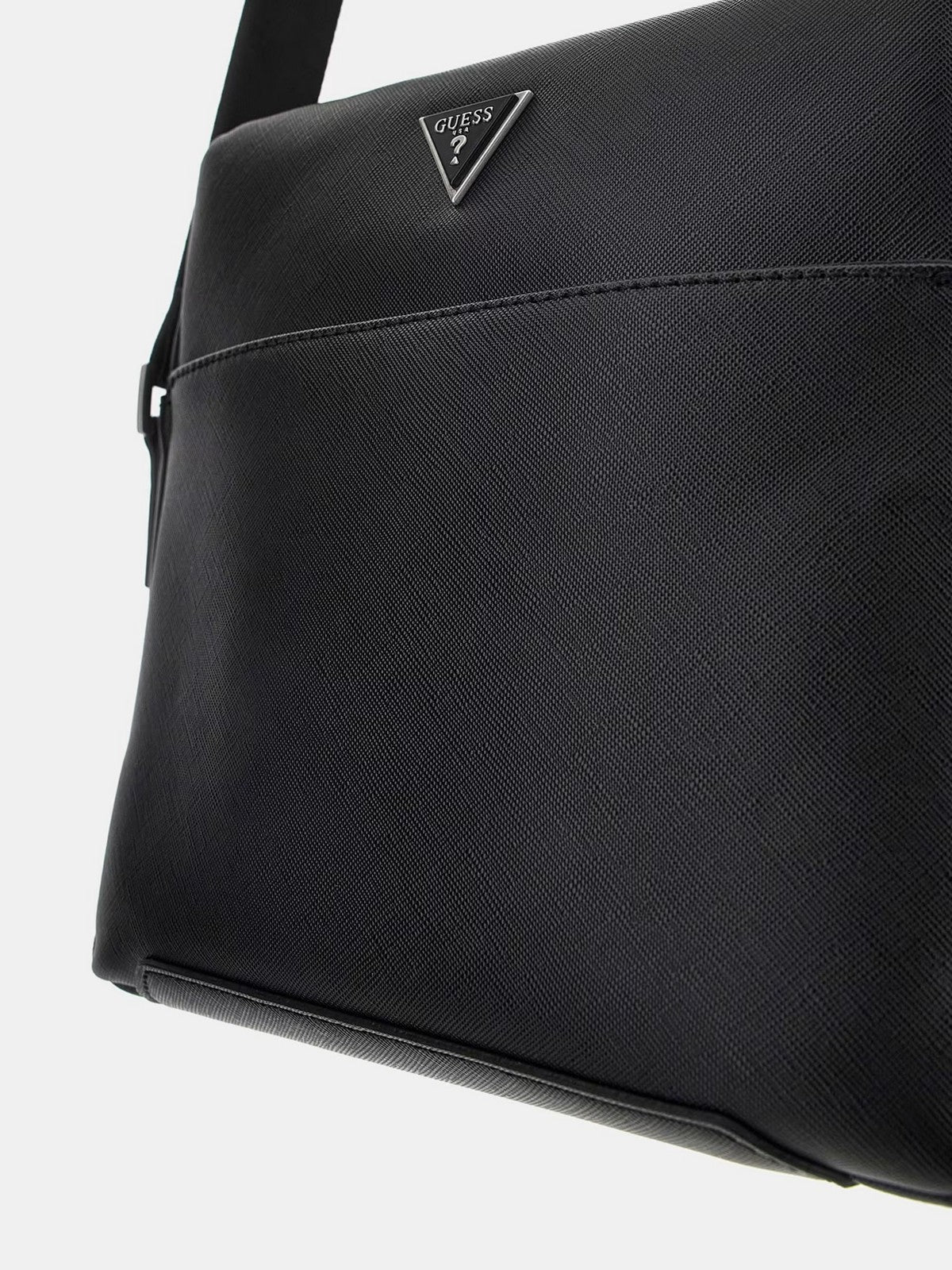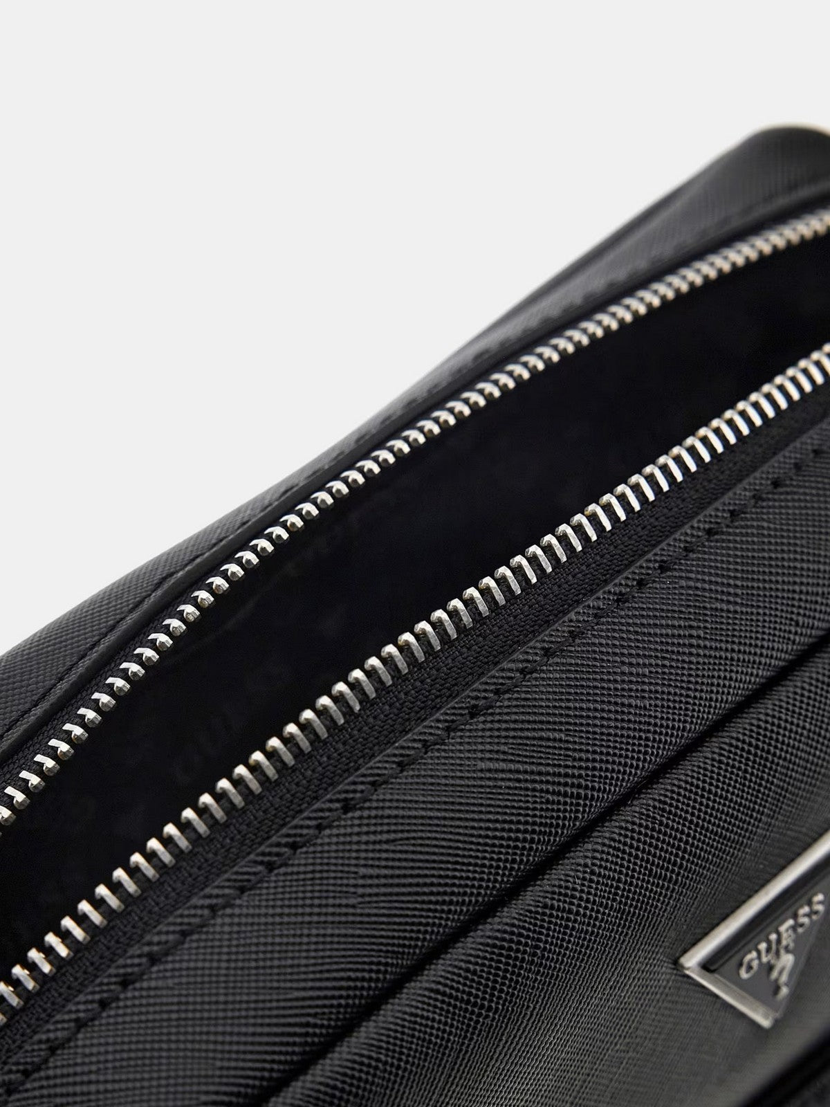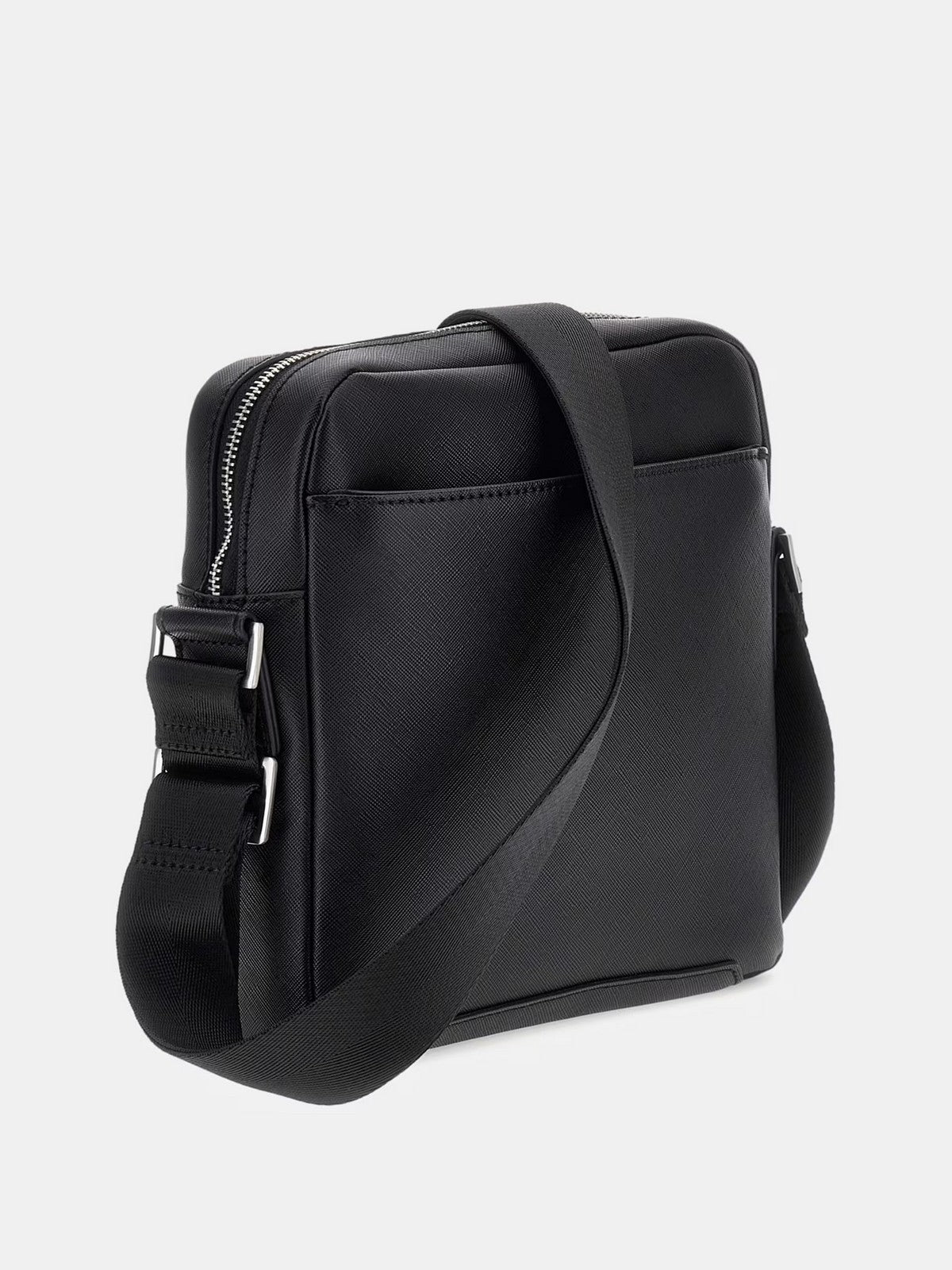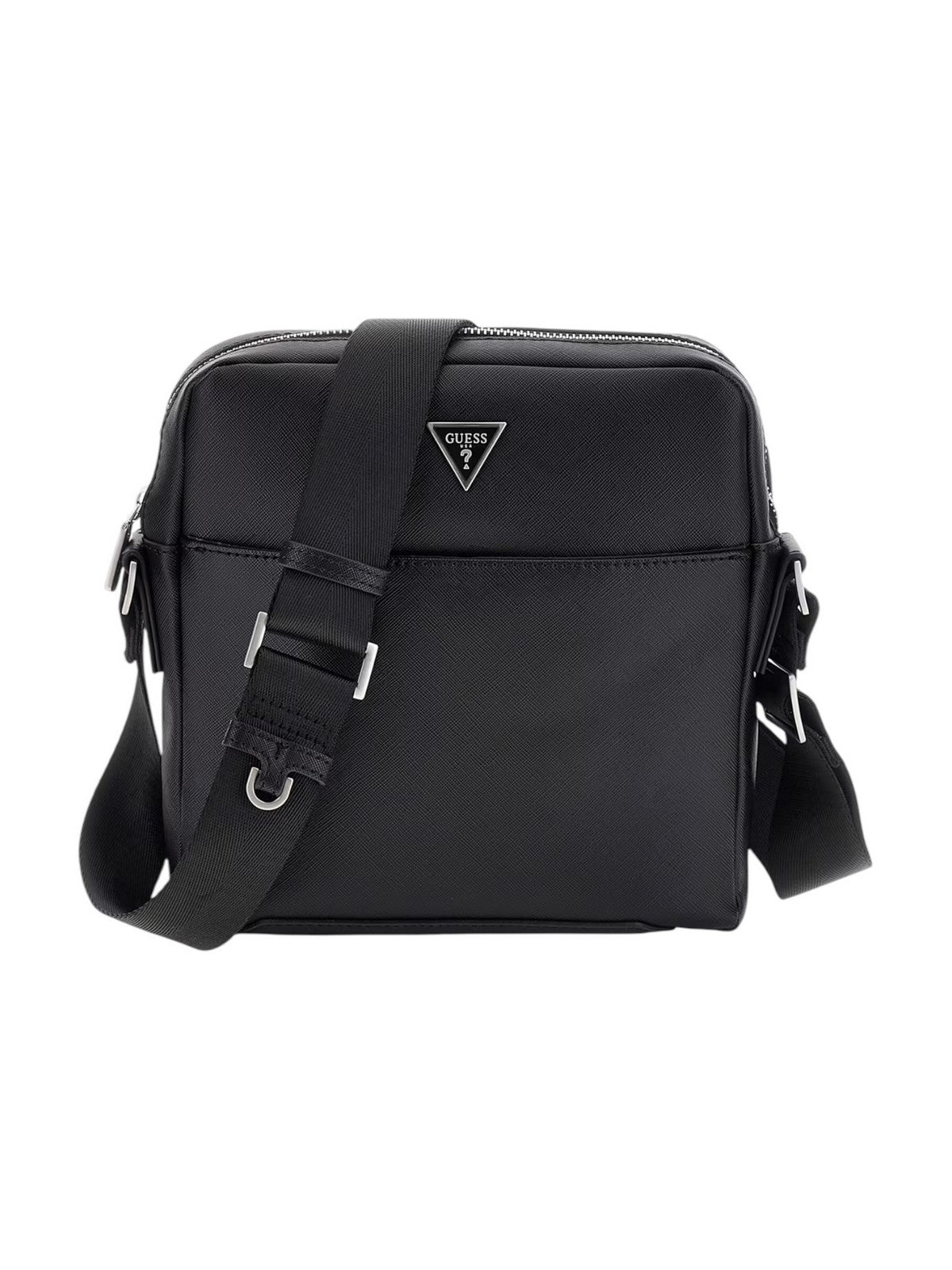 GUESS Men's SAFFIANO ECO TOP ZIP CROSSBODY HMTOSA P4258 BLA Black Shoulder Bag
