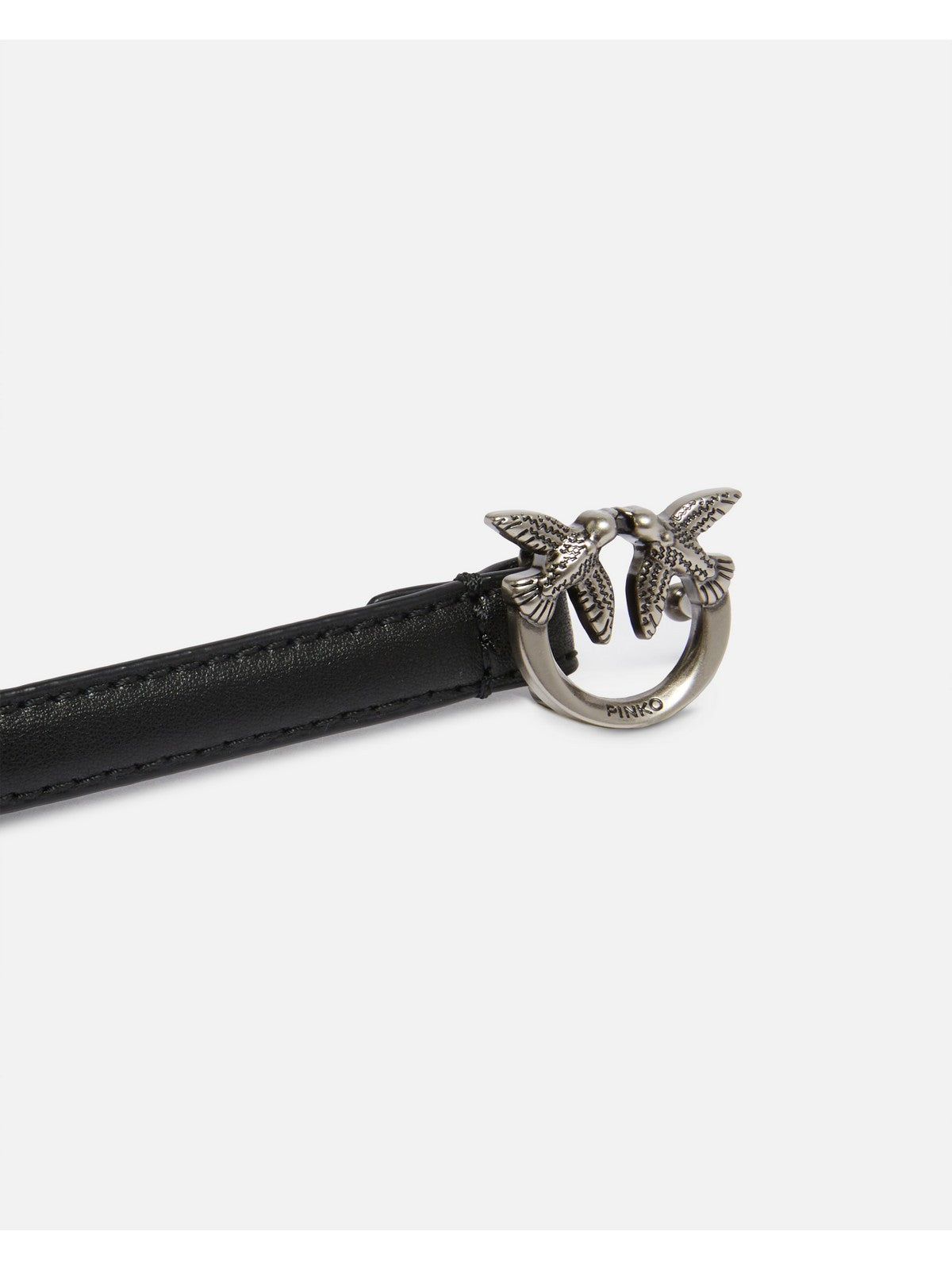 Cintura sottile PINKO in pelle con mini fibbia Love Birds Diamond Cut in metallo.