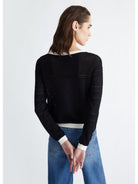 LIU JO Pullover aus Viskosemischung, durchgehend gestanztes Grafikdesign. U-Boot-Ausschnitt und lange Ärmel mit kontrastierenden Kanten. Dekorative Taschen auf der Vorderseite mit Logo-Knopf