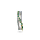Filodellavita Prezioso Collection Ring, 3 Strands in 9kt Yellow Gold, .950 Palladium Silver and 12 Emeralds 0.20 ct total.