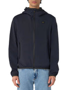 BLAUER windbreaker in slightly stretch nylon, unlined, with a fixed hood. Perfect for cool evenings and day trips.