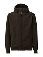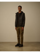 Giubbino C.P. COMPANY realizzata in C.P. Shell-R, un softshell stretch a 3 strati in poliestere multifilamento riciclato. Resistente per una colonna d'acqua di 5000 mm, garantendo protezione antivento. Trattato anti-goccia.