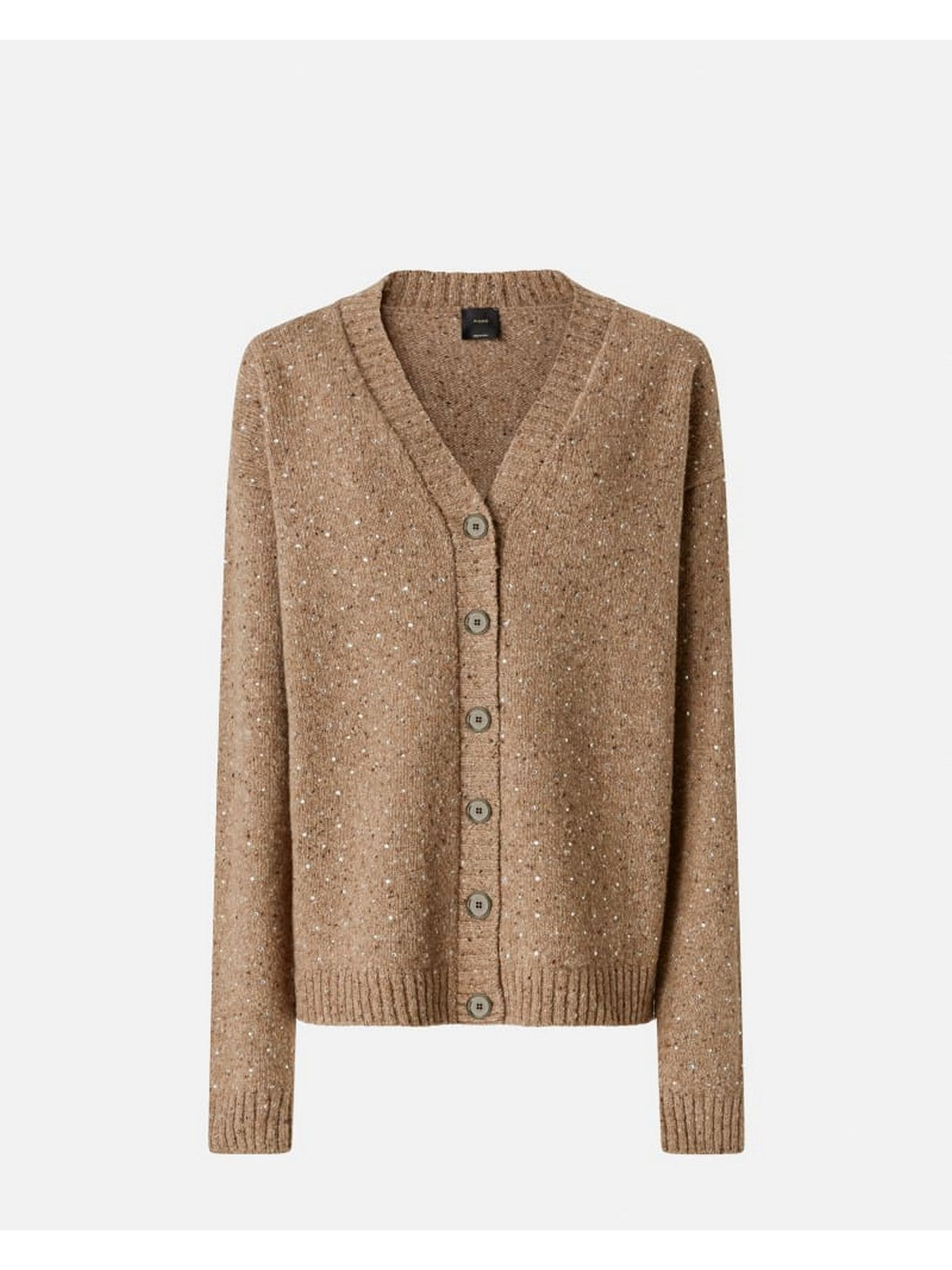 Cardigan Donna Pinko - Cardigan in tessuto bouclé con strass - Beige