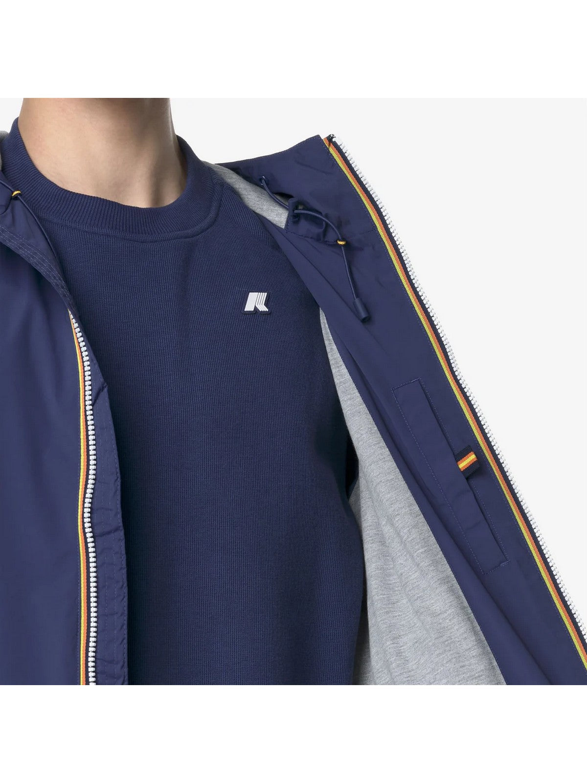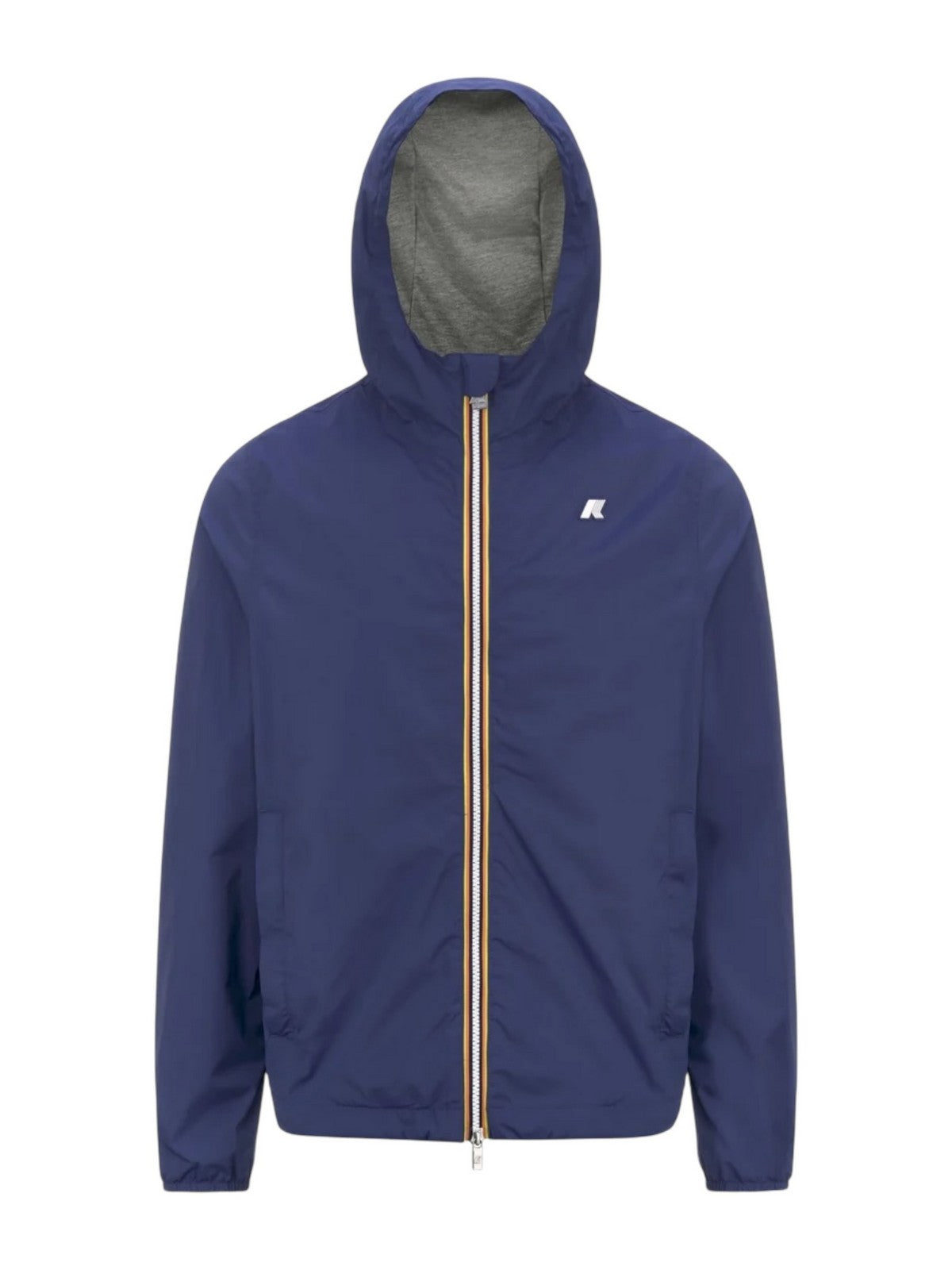 K-WAY Jack jacket, made of stretch nylon with soft grey melange cotton jersey lining only on the front and back which guarantees maximum comfort, protection and a pleasant sensation in contact with the skin.