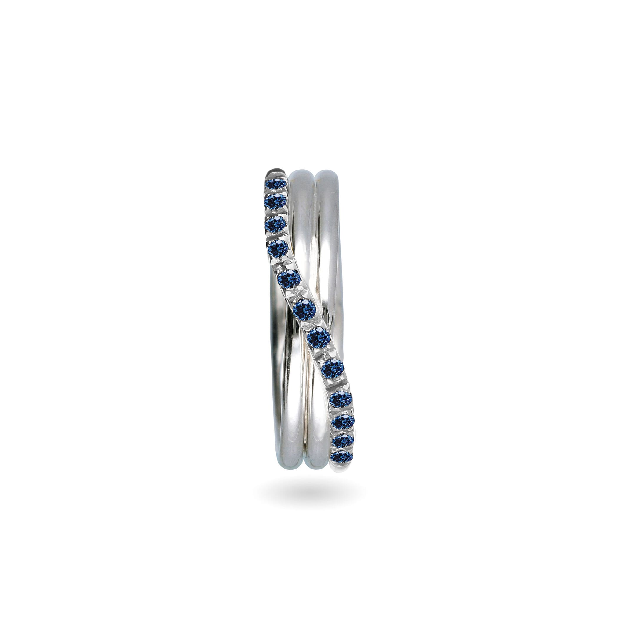 Filodellavita Prezioso Collection Ring, 3 Strands in .950 Silver with 950 Palladium with 12 Blue Sapphires 0.21 ct total.