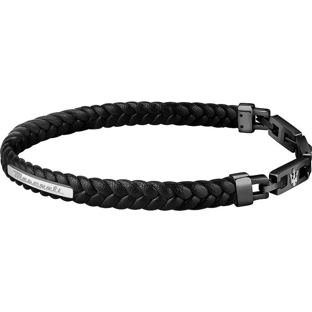 Maserati men's bracelet. Crafted from steel and black recycled leather. Length: 22.5 cm. Reference: jm222ave02