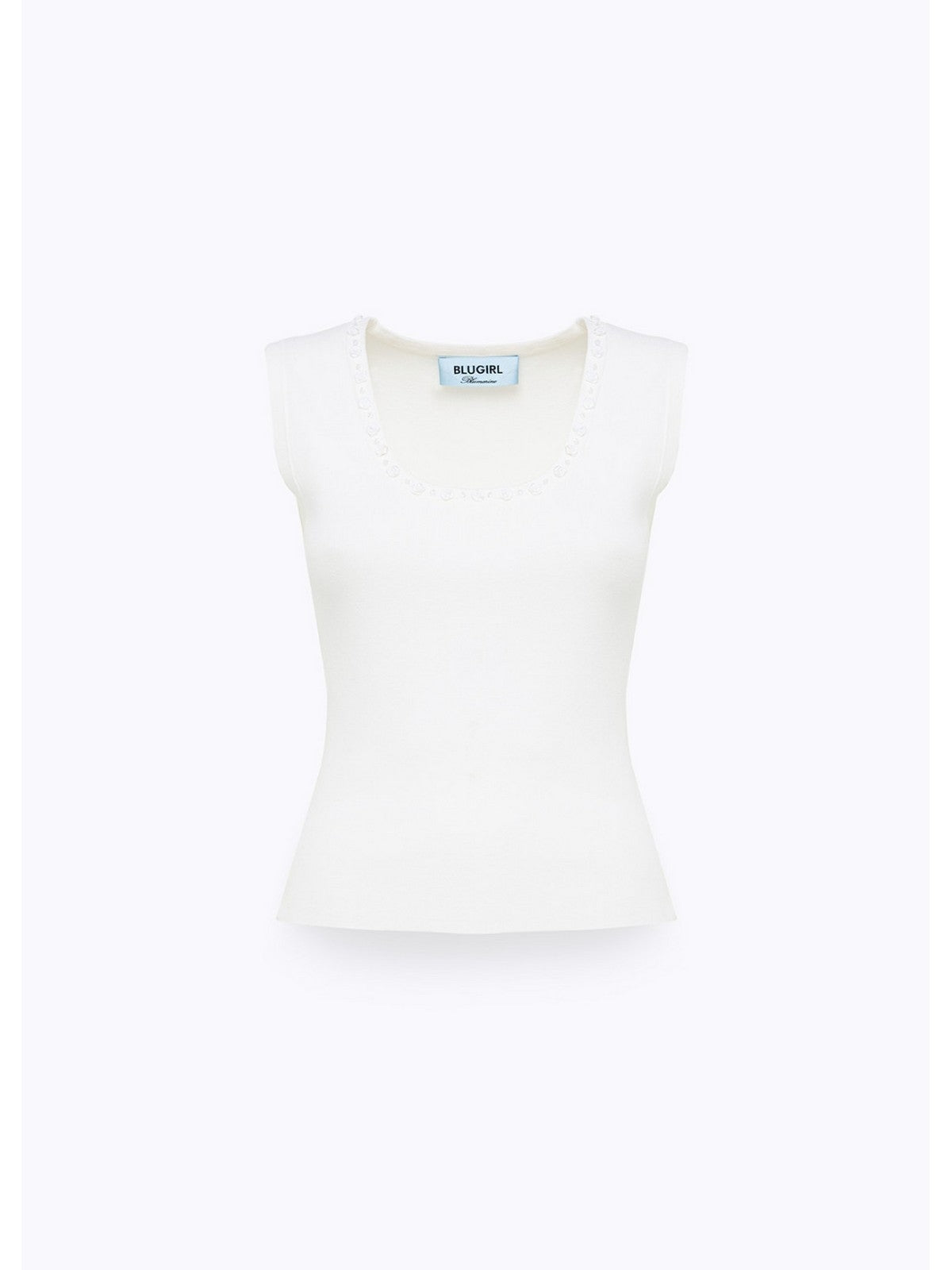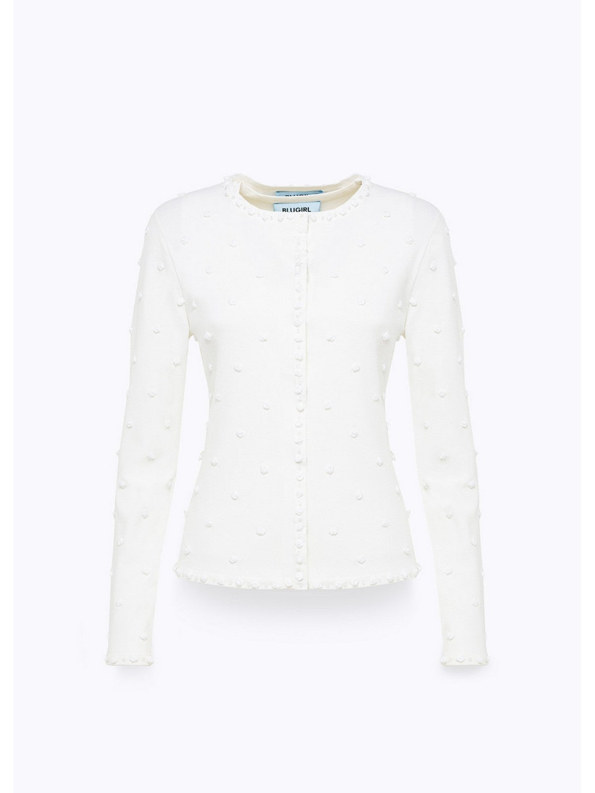 Blugirl Women's Cardigan - Cardigan and Top with Rose and Coral Embroidery - Cream