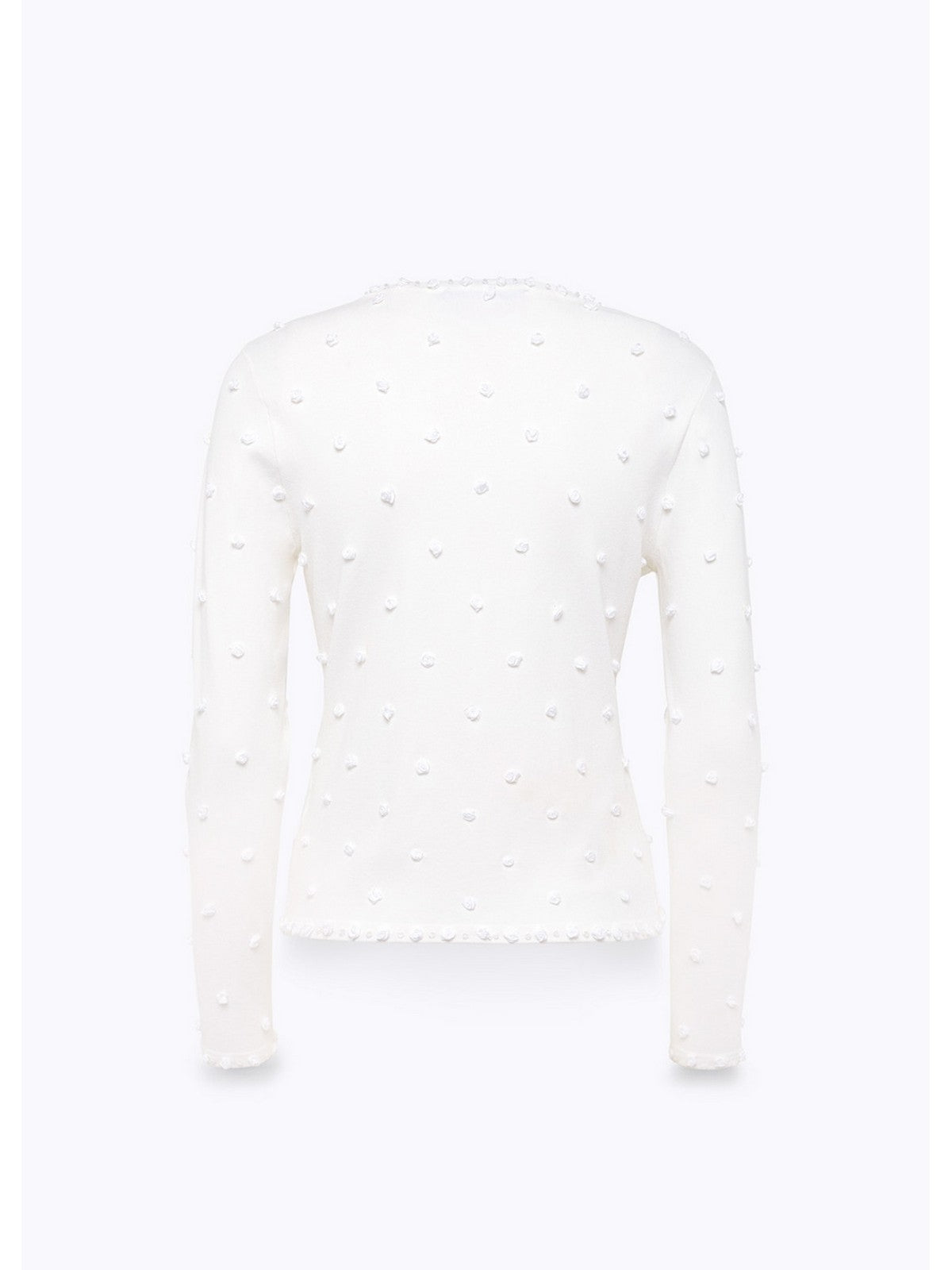 ICONIC ELEGANCE FOR THIS VISCOSE KNIT TWIN-SET EMBROIDERED WITH HAND-APPLIED SATIN ROSES AND PIPING INTERSPERED WITH ROSES WITH MATCHING CORALS. THE STRAIGHT-FIT CARDIGAN FASTENS WITH SNAPS, A ROUND NECK, AND LONG SLEEVES. THE TOP HAS A FITTED LINE AND A WIDE NECKLINE. TO BE INTERPRETED IN A MYRIAD OF SPECIAL LOOKS. COMPOSITION: 83% VISCOSE 17% POLYESTER