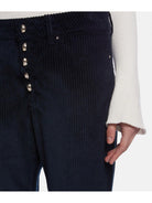 Pantalone DONDUP Koons in velluto. Vita regolare loose fit. Modello cinque tasche. Chiusura con bottoniera gioiello. Lunghezza alla caviglia. Logo Dondup.