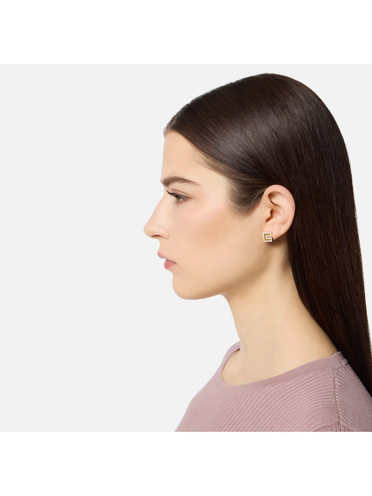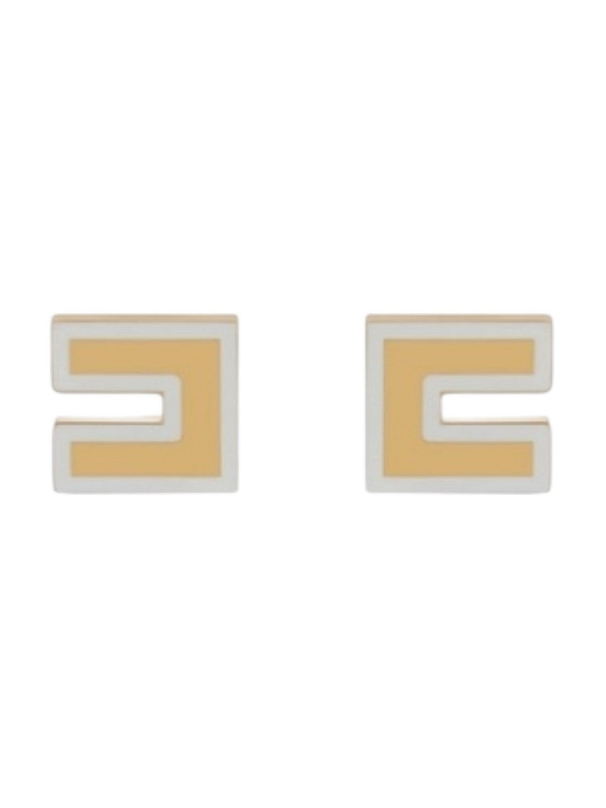 ELISABETTA FRANCHI earrings with logo featuring an external frame that creates a two-tone pattern. Pin closure.