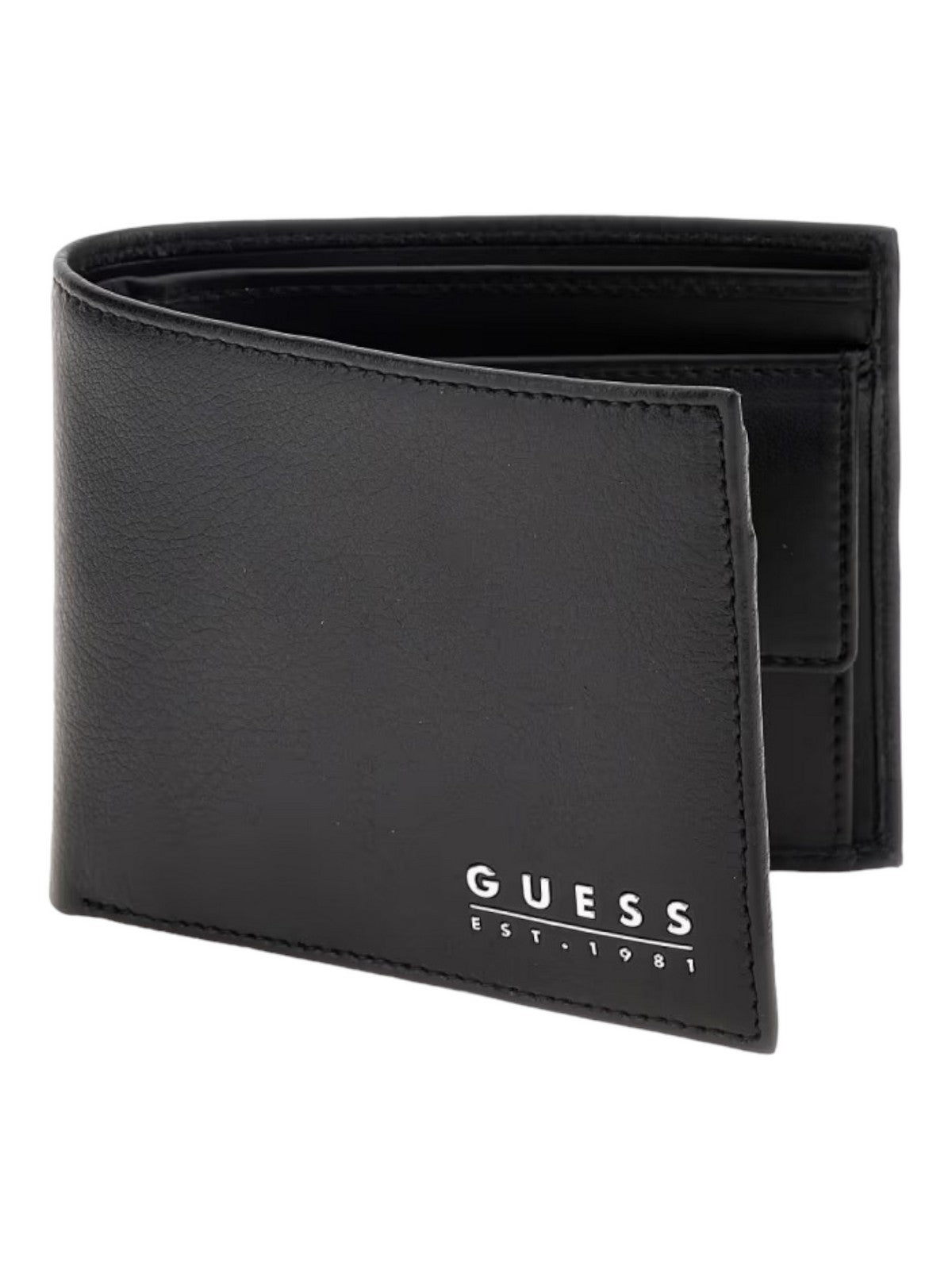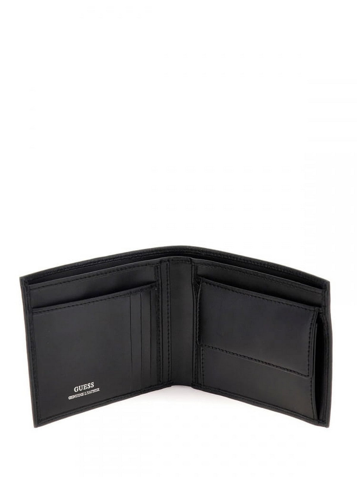 GUESS men's wallet in leather. Contrasting logo lettering. Inside compartment for business cards, documents and banknotes. Coin compartment with closure.