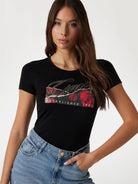 GUESS Women's T-shirt SS CN ROSES PRINT W5RI03 J1314 JBLK Black