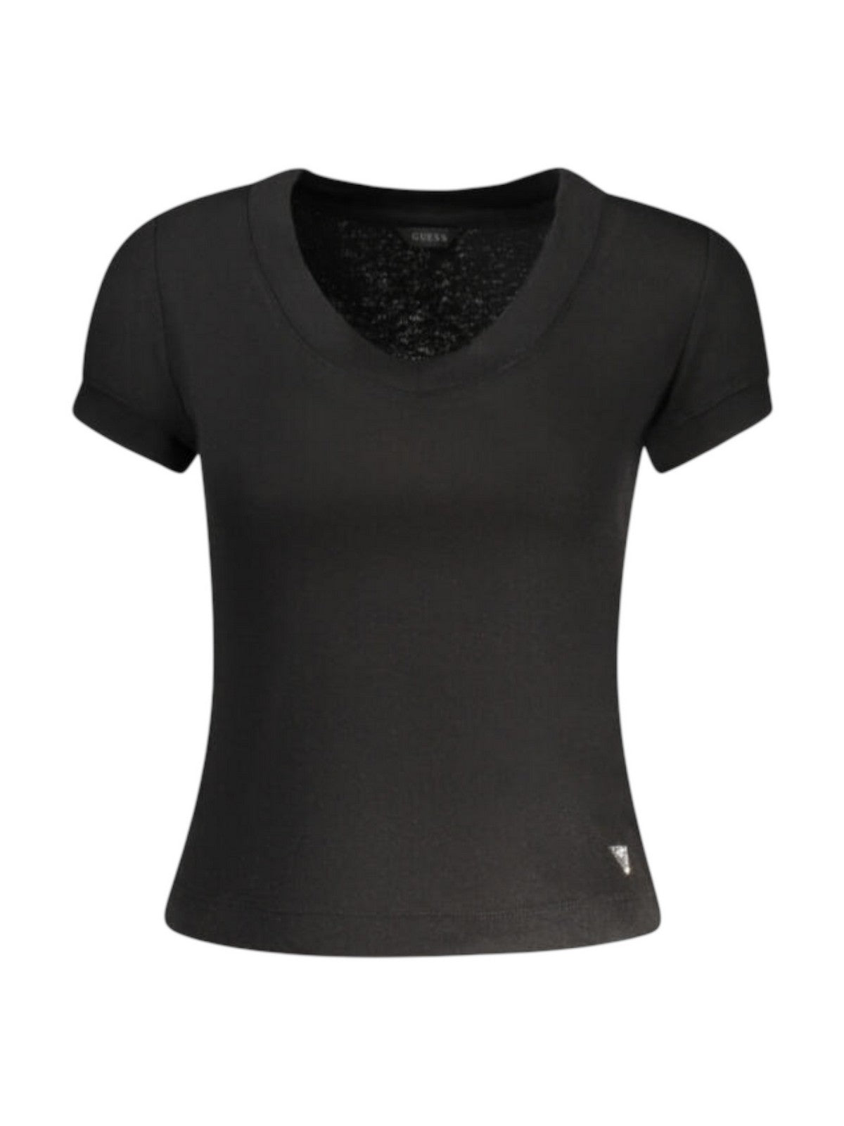 GUESS Women's T-shirt TINA SS V NECK RIBS TOP W5RP17 KCNH2 JBLK Jet Black A996