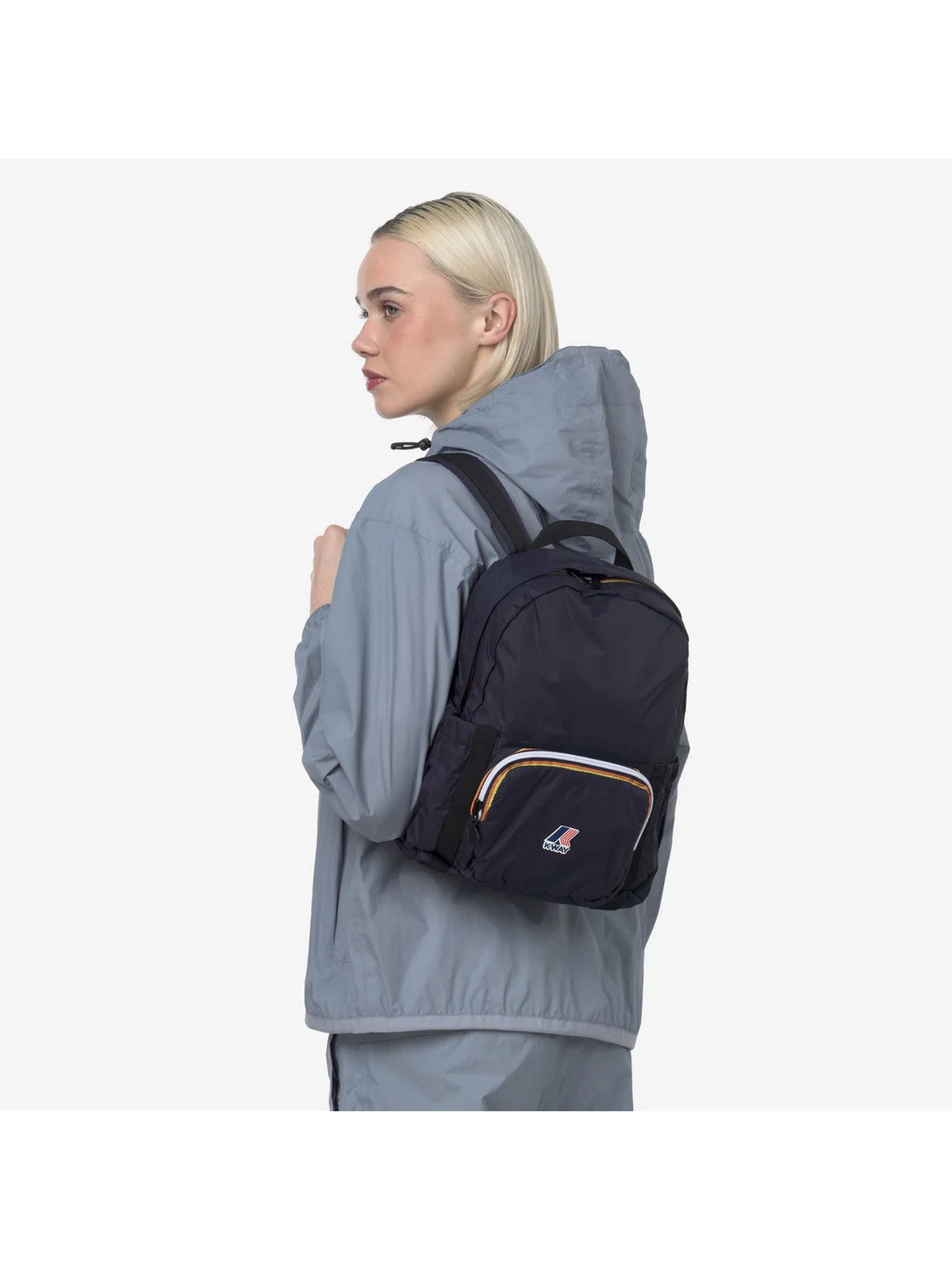 The K-WAY Michelet backpack, made of waterproof ripstop nylon, features a practical zip closure and adjustable padded shoulder straps. Numerous pockets and a handy carabiner allow you to attach keys and store items you need to keep close at hand during outings.