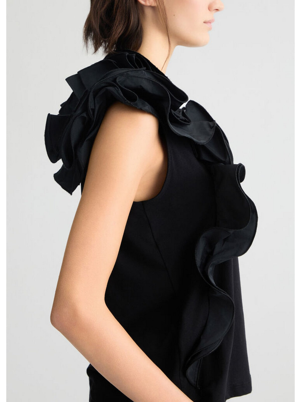 LIU JO T-shirt in cotton jersey and taffeta ruffles