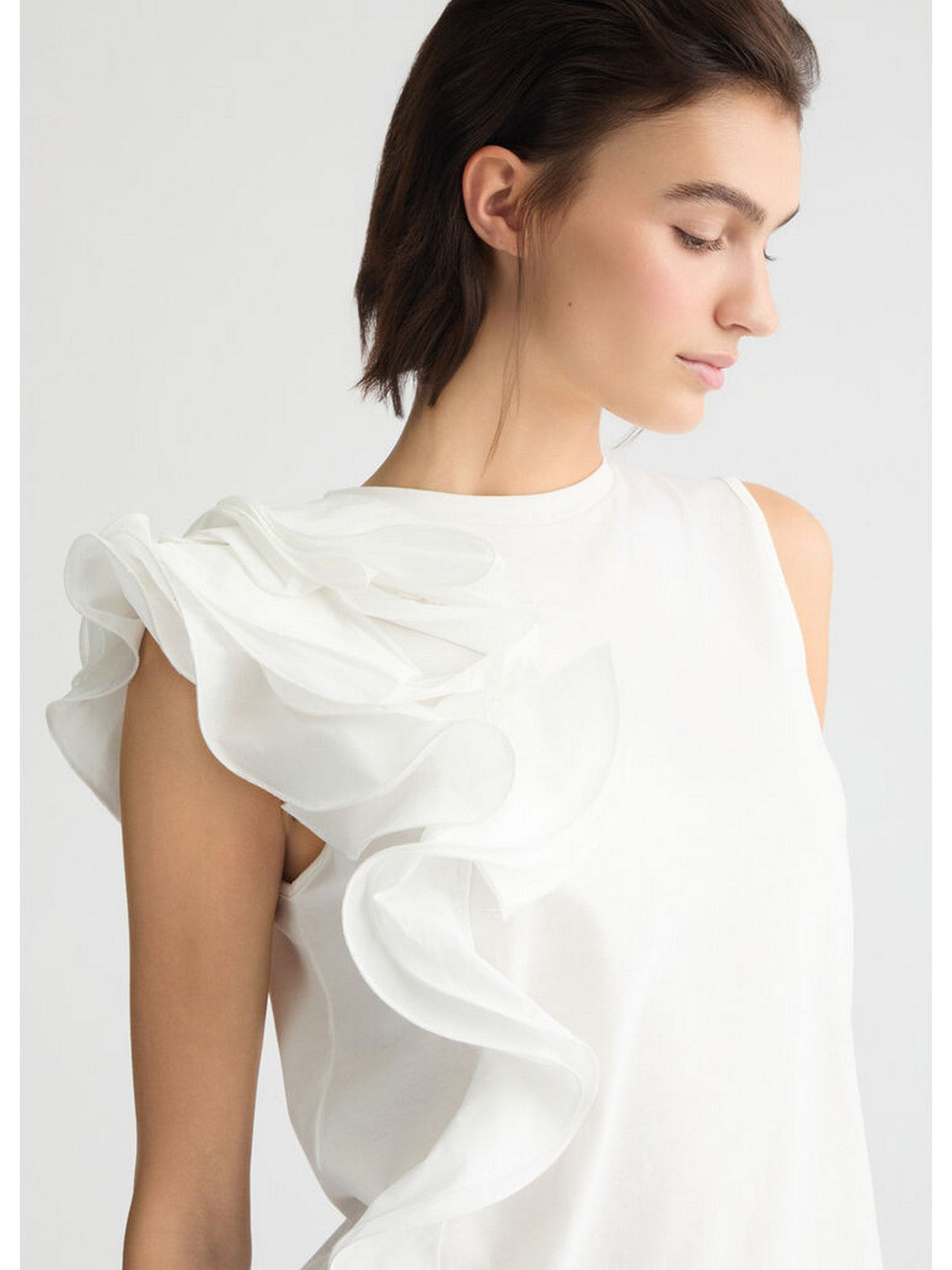 ? Asymmetrical decorative ruffle on the left shoulder