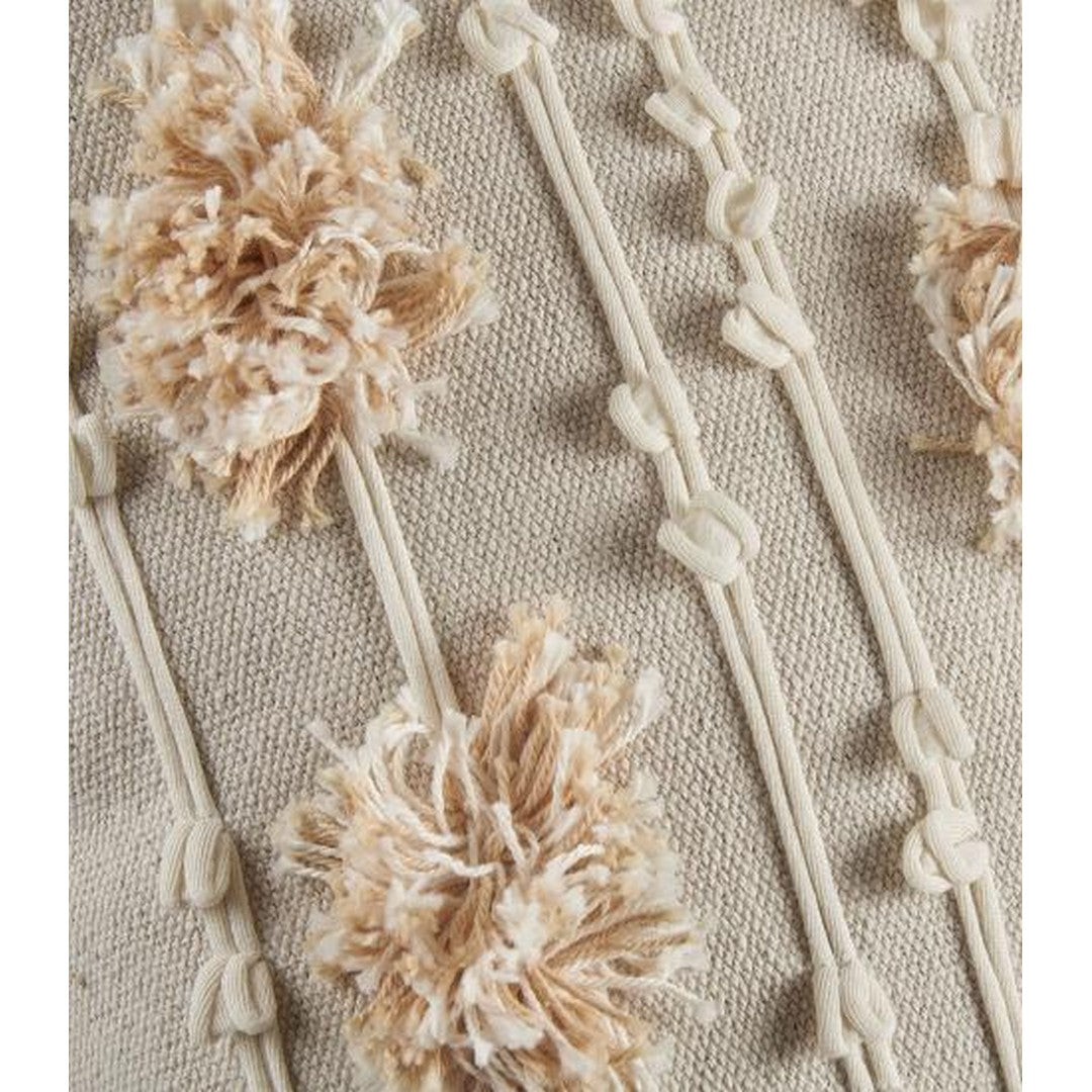 Cotton cushion with fabric applications and embroidery. With soft and delicate tones perfect for decorating your living room with intimate elegance. Ideal for lovers of Country and Modern Country style. Removable cover.