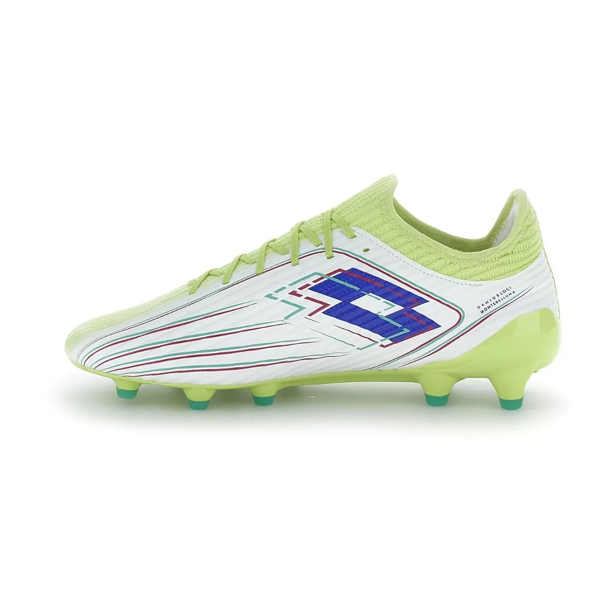 Lotto SOLISTA 200 VIII FG soccer cleats. The Lotto Solista 200 VIII FG is Lotto's top-of-the-range lace-up soccer cleat from the Solista line. The upper is made from a single 3D mesh component to ensure maximum lightness, aerodynamics, and ball control. The shoe features a low-cut shape and a completely new graphic inspired by speed. High-quality microfiber lining with memory foam in the heel area to maximize comfort, ERGO TONGUE elastic mesh tongue for maximum comfort and fit. The Firm Ground outsole features 6 EVO studs positioned in strategic areas to improve traction, acceleration, braking, and sudden changes of direction, combined with 5 conical studs to improve stability and flexibility, facilitate multidirectional movements and take-off, and a bladed stud for greater traction and control when accelerating on short, dry or slightly damp natural grass. The PUNTOFLEX sole construction is a special technical feature designed to allow the foot to flex correctly and provide excellent elastic return. It is made of Nylon PA 12 material for excellent flexibility, responsiveness, and lightness thanks to the reduced thickness of the sole design. This shoe is recommended for professional use. Salbini technical articles for sport is an official Lotto retailer.