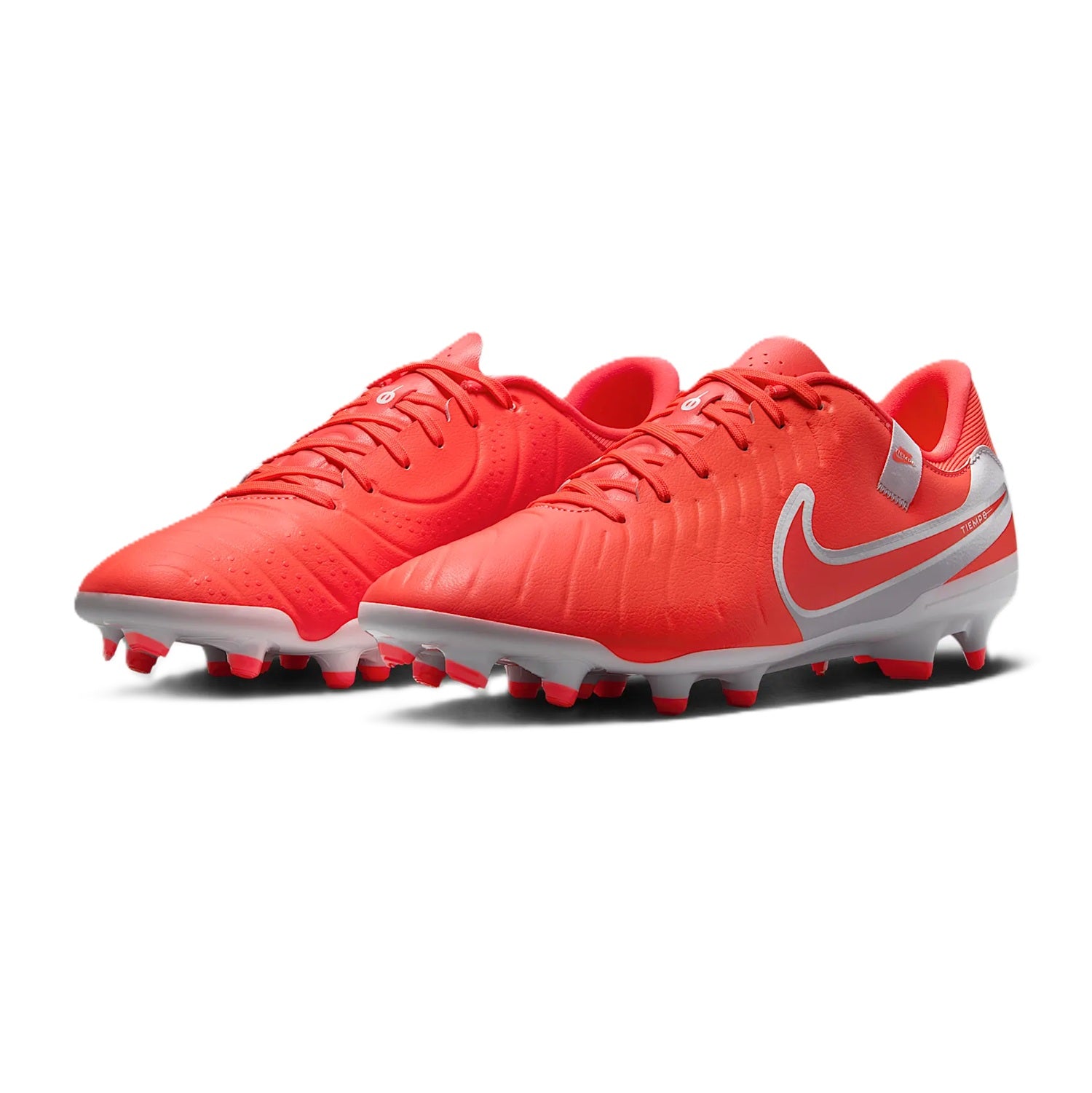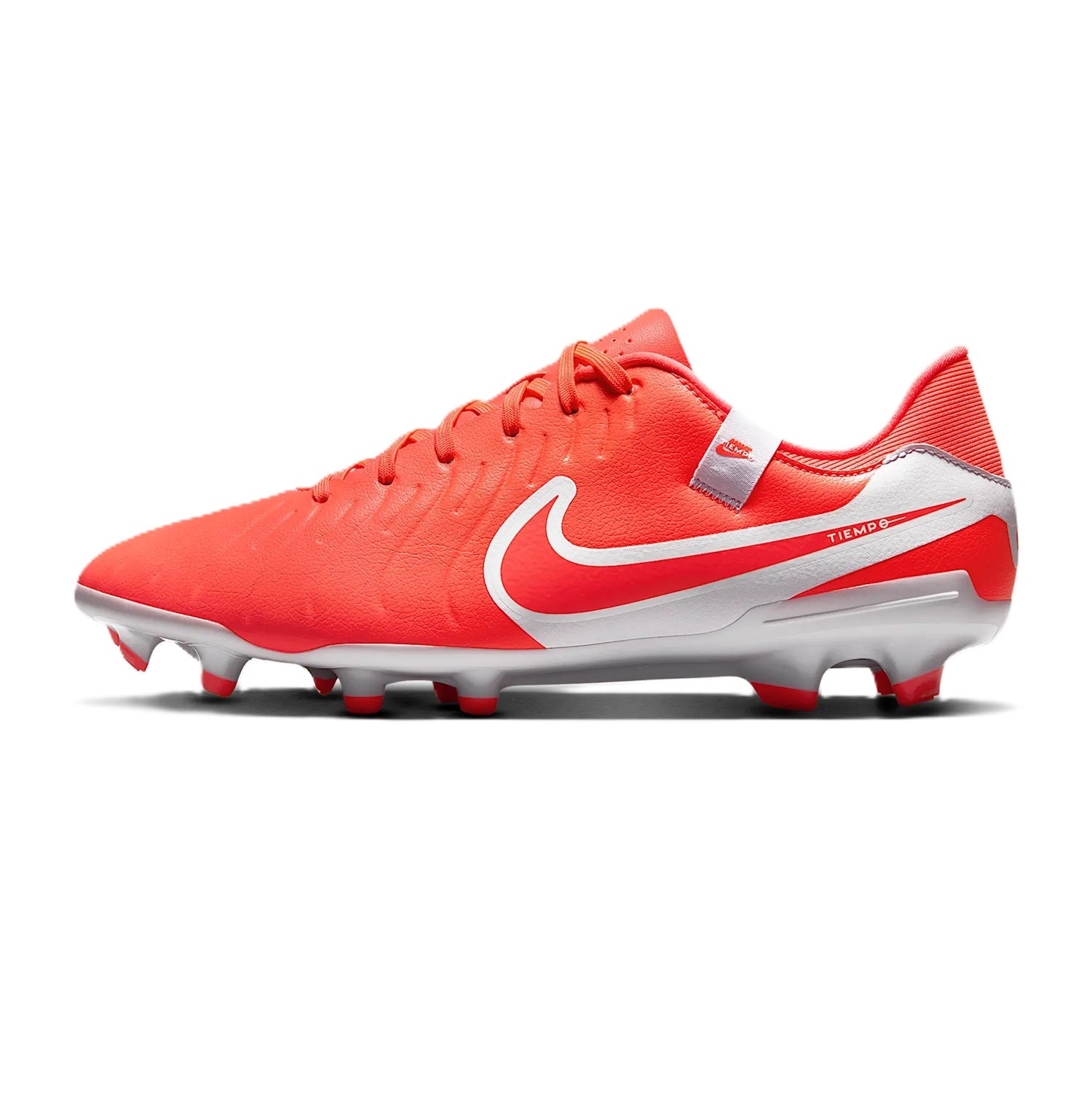 Nike Tiempo Legend 10 Academy FG-MG Mad Energy Pack Soccer Cleats. Designed to take your game to the next level, the latest iteration of this Nike Tiempo Legend boot is crafted from the all-new FlyTouch Lite technical leather, softer than natural leather, which adapts to the foot without deforming to dictate the pace of the game, lighter and more elegant than any other Nike Tiempo made to date. Amplified feel, microdots on the upper amplify contact areas for shooting, dribbling, and passing and create a more elegant look by eliminating extra padding, all without compromising ball control. A natural and adaptable fit, the incredibly soft FlyTouch Lite technical leather adapts to the foot without deforming for constant comfort. The tongue construction, with additional padding, offers a stable fit and constant comfort in key contact points. The microfiber lining offers a premium fit. Traction on the pitch, the soleplate integrates conical studs in the heel for ideal traction and stability during changes of direction and braking, in any condition. Ideal for natural and synthetic surfaces, cushioned insole. Salbini technical articles for sport is a Nike retailer.