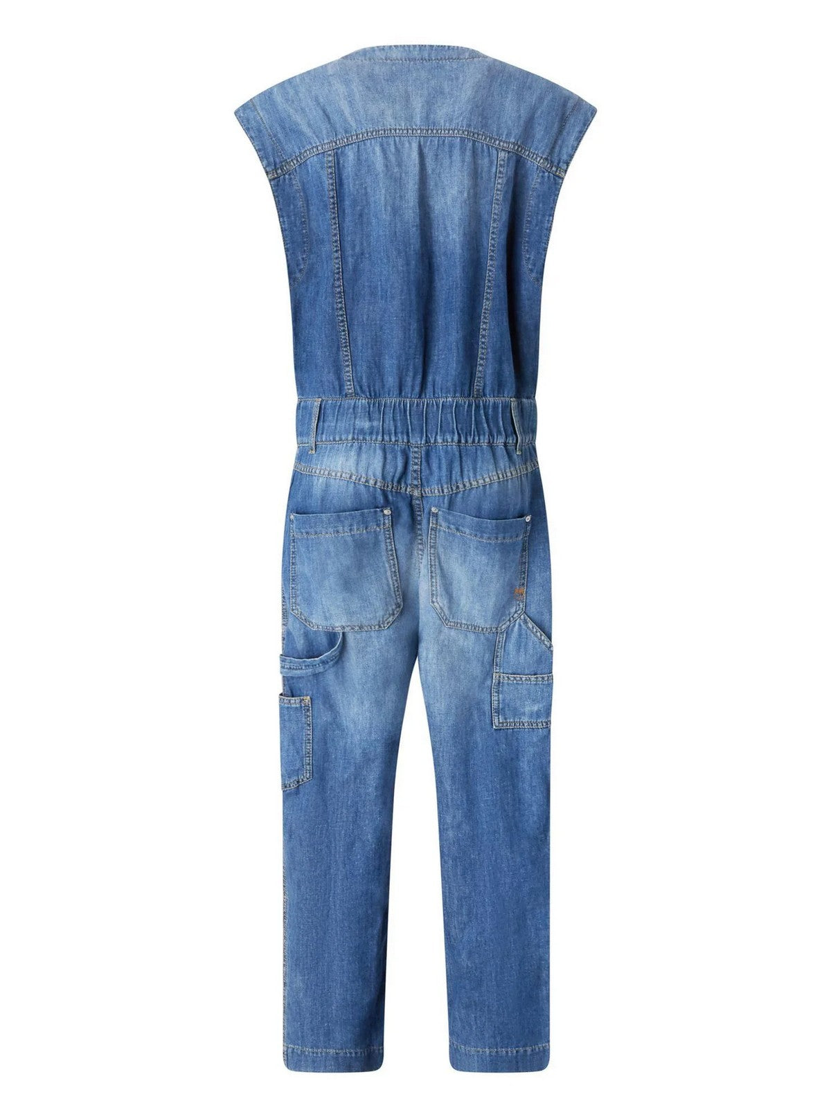 Solid color vintage blue denim, medium wash.