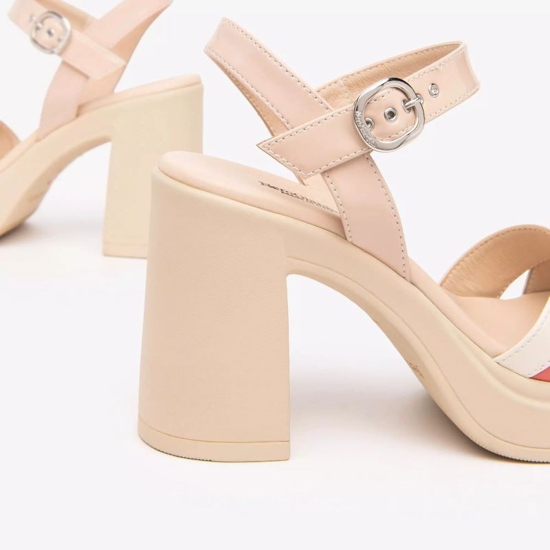 Nero Giardini women's sandal in elegant leather and technical material, featuring a front strap and adjustable ankle strap with buckle. A block heel of approximately 8 cm and a built-in platform provide lift and stability. Leather insole and non-slip rubber sole. The perfect blend of comfort and style, ideal with summer dresses or capri jeans for a refined look. Made in Italy, it embodies quality craftsmanship and versatility for any occasion.