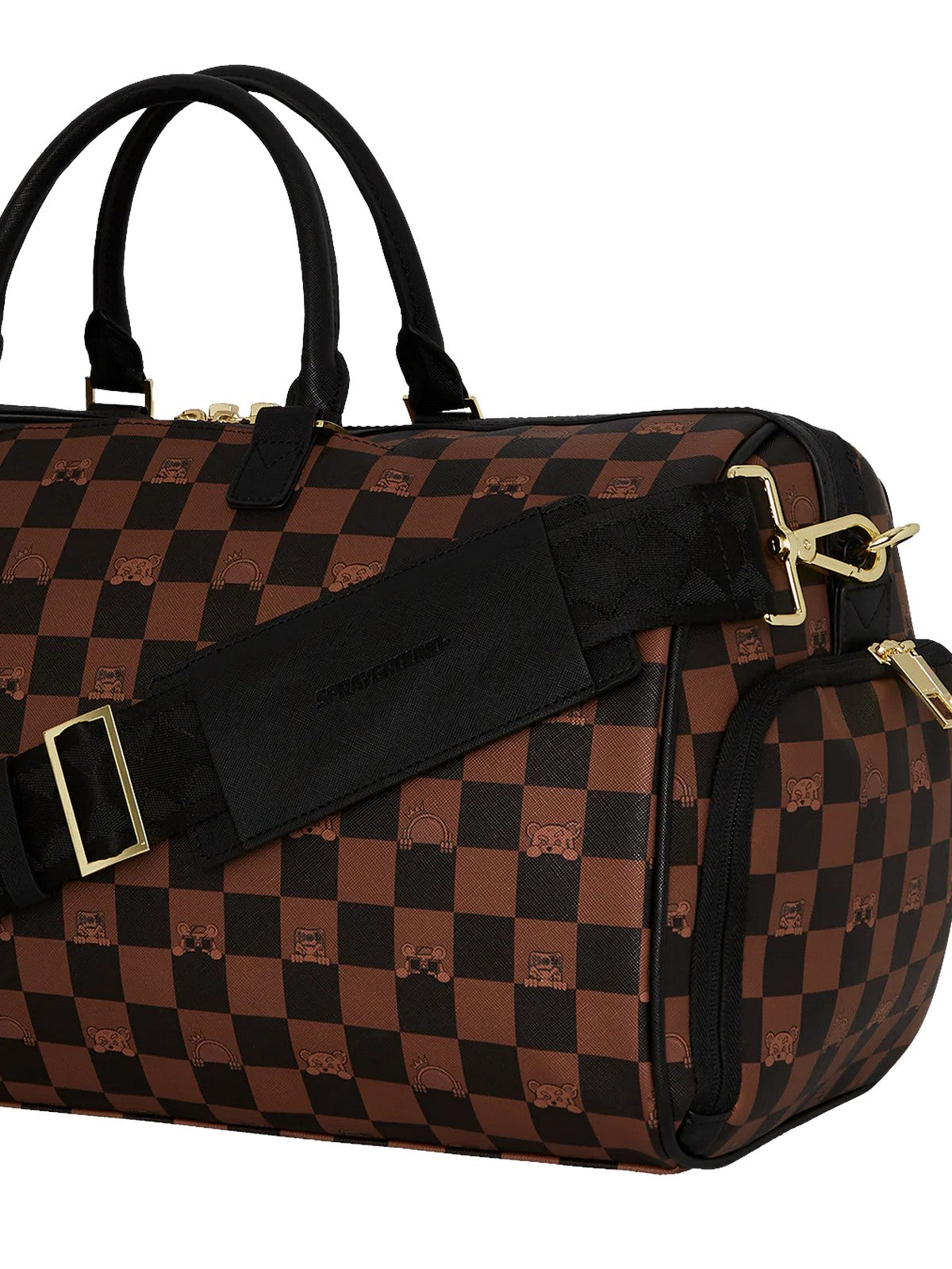 SPRAYGROUND Men's Duffel Bag PEEKING CHARACTER CHECK DUFFEL 910D7506NSZ Brown