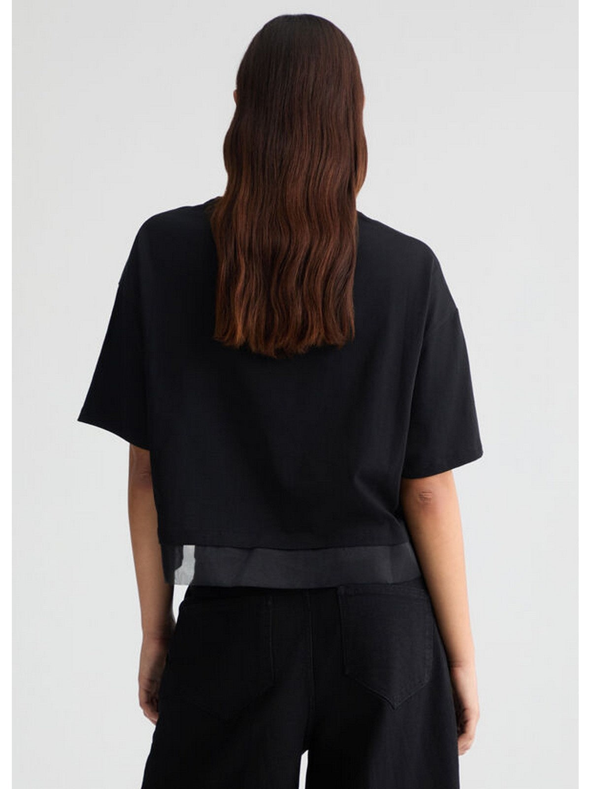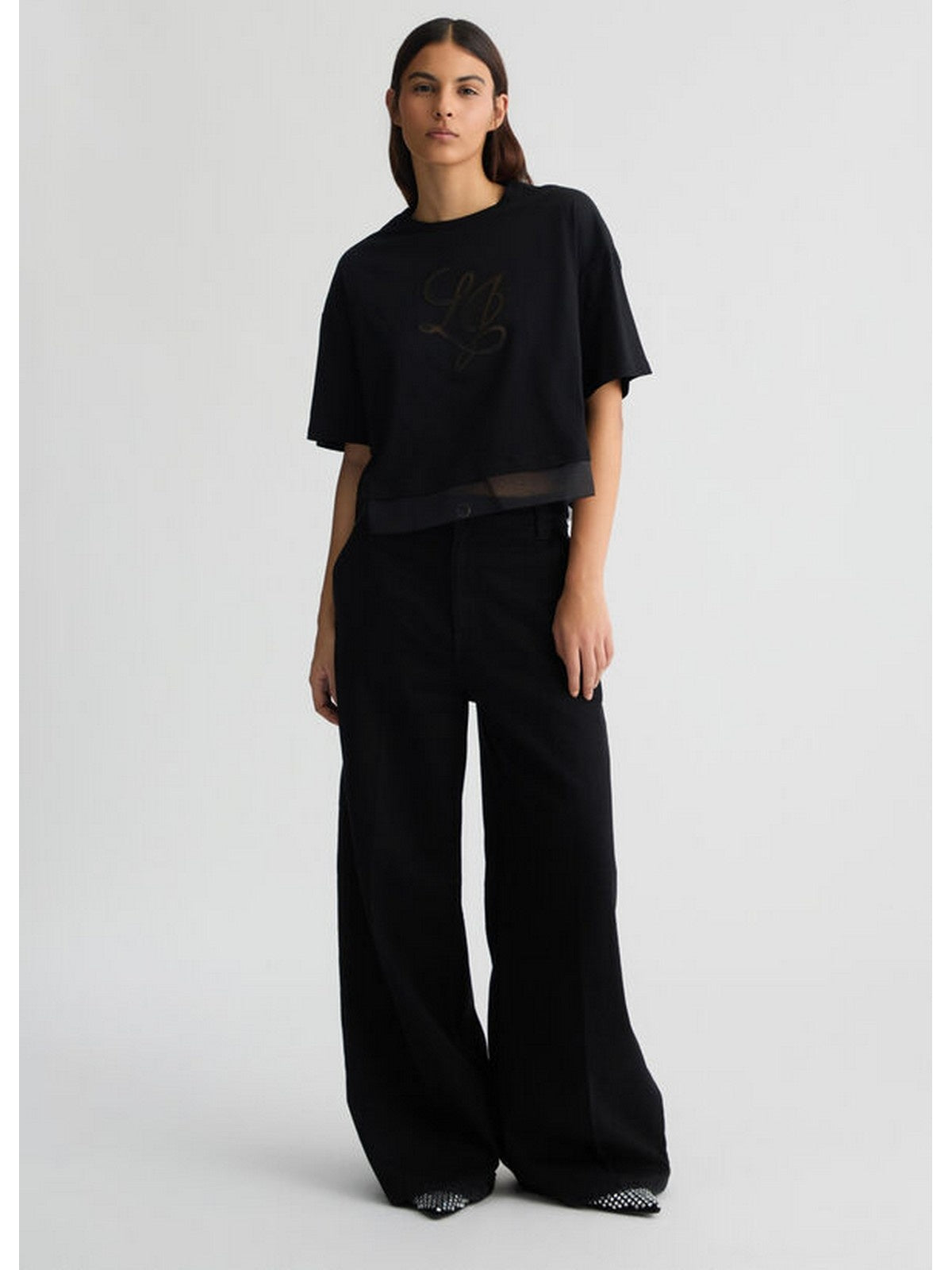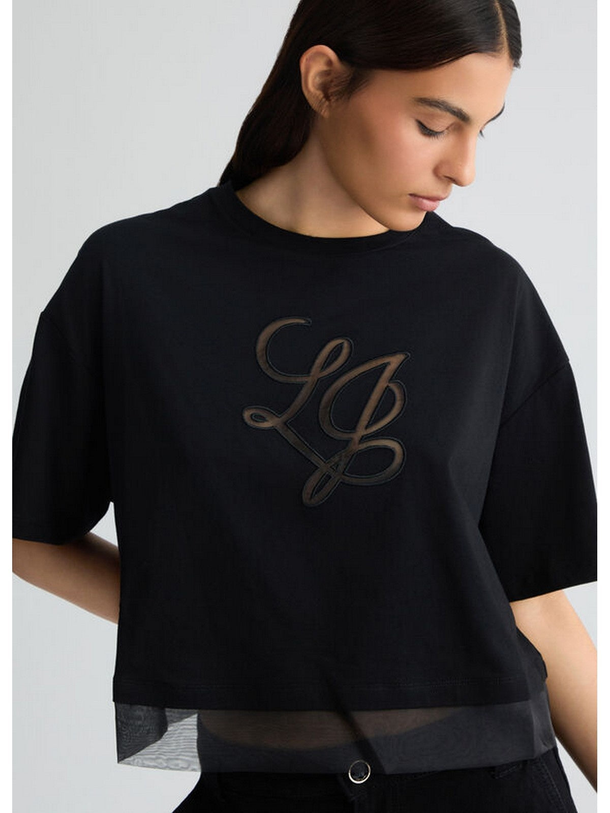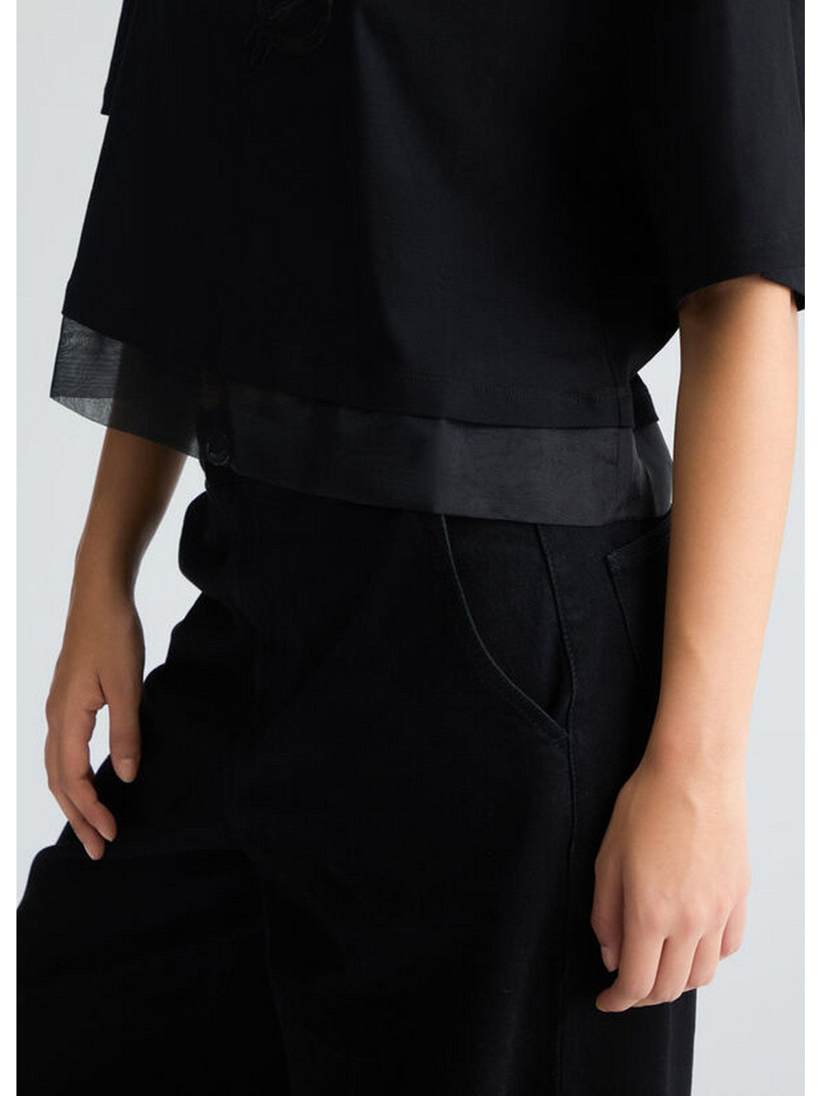 Sinuous sheer lines and a touch of city chic: this Liu Jo Better t-shirt captivates with its comfortable silhouette and organza inserts. An exclusive design that enhances even the most casual looks.