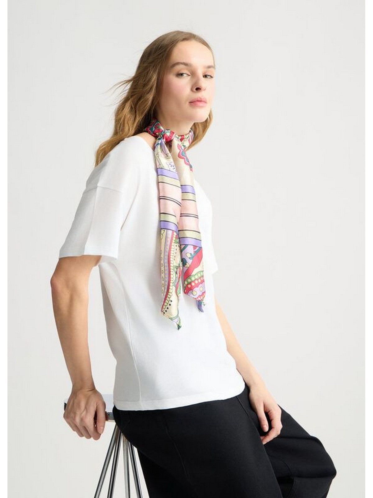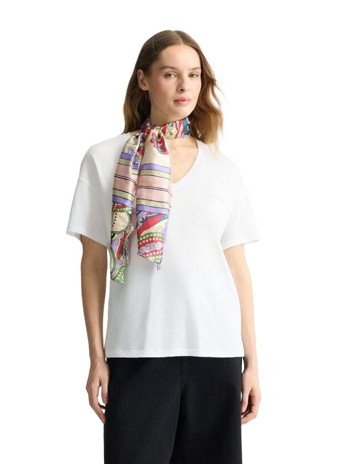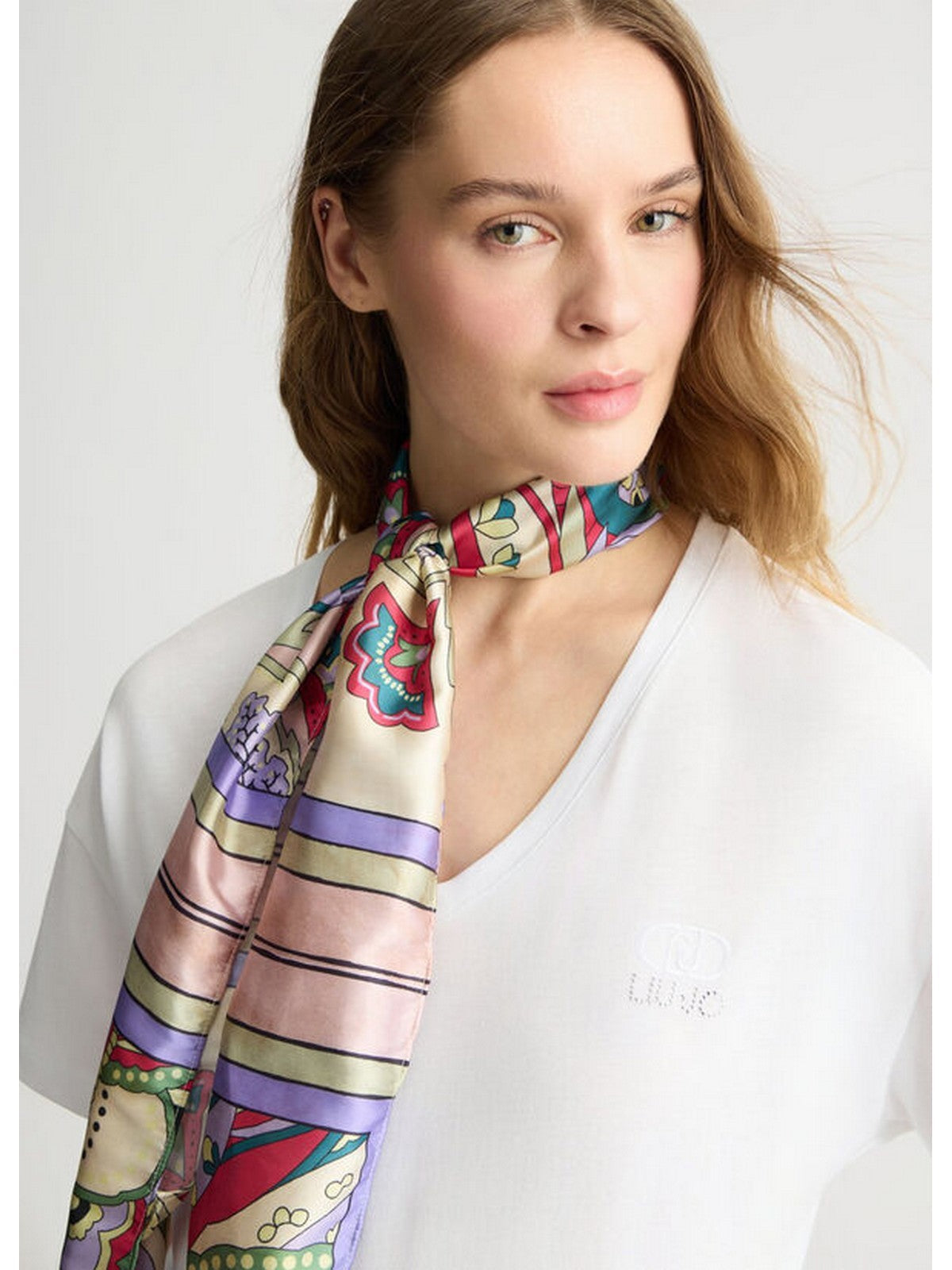 Liu Jo Women's T-Shirt - Women's T-Shirt with Patterned Scarf - White