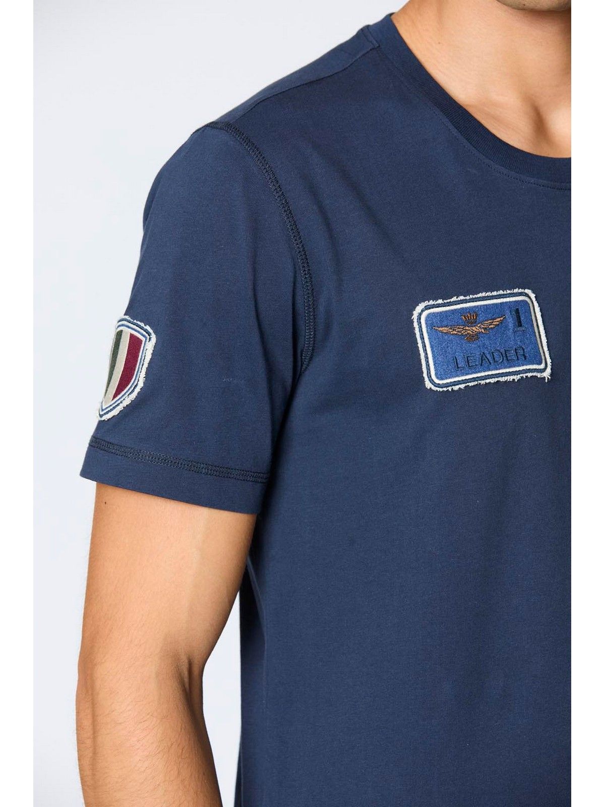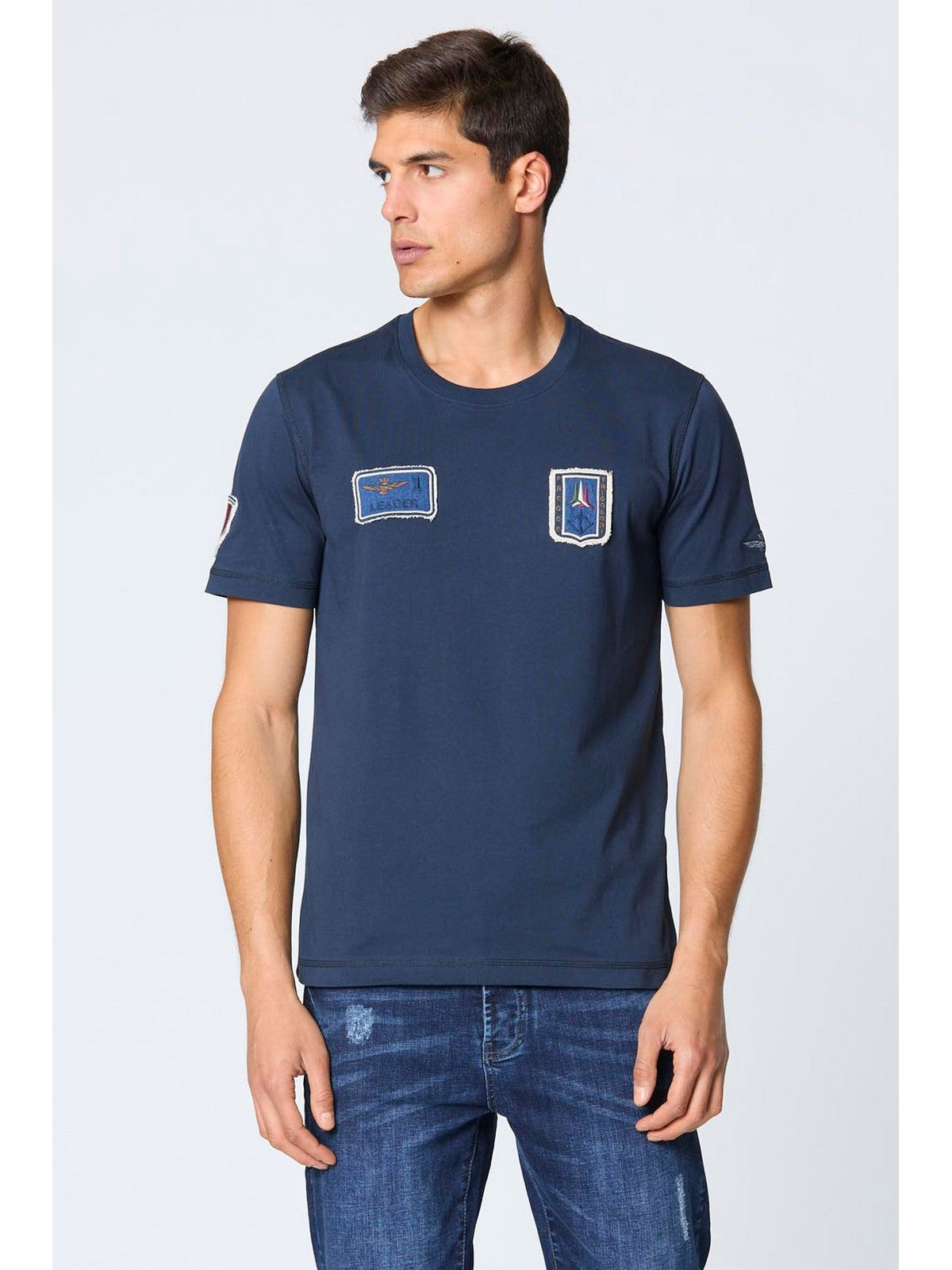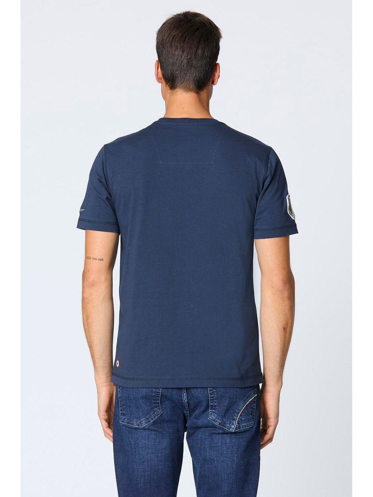 Aeronautica Militare Men's T-Shirt - Frecce Tricolori T-Shirt with Denim Patch - Blue