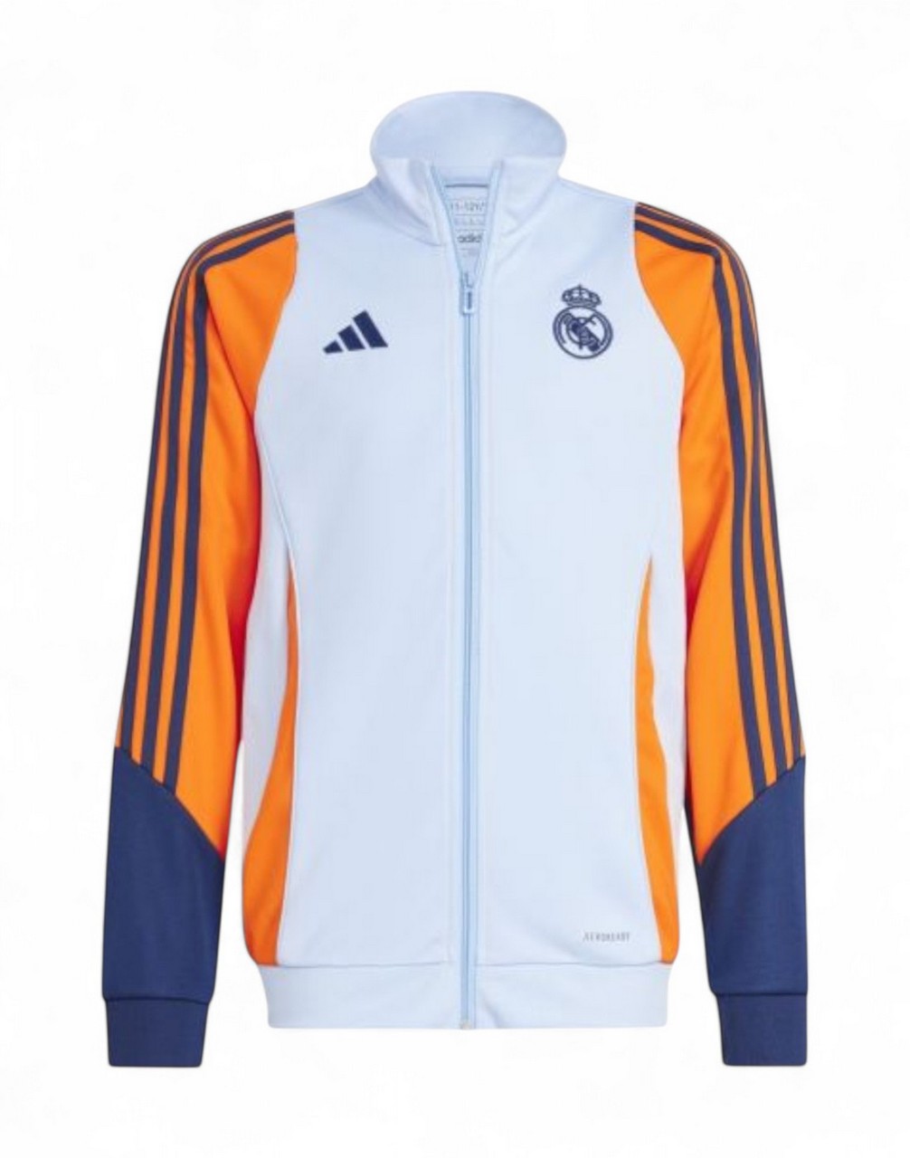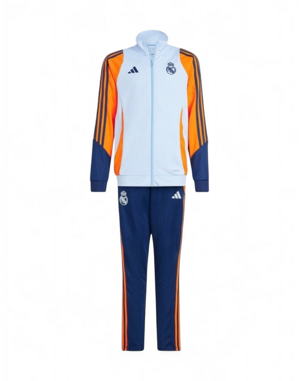 The official Real Madrid training tracksuit, designed for young fans who want to train or relax in style and comfort.