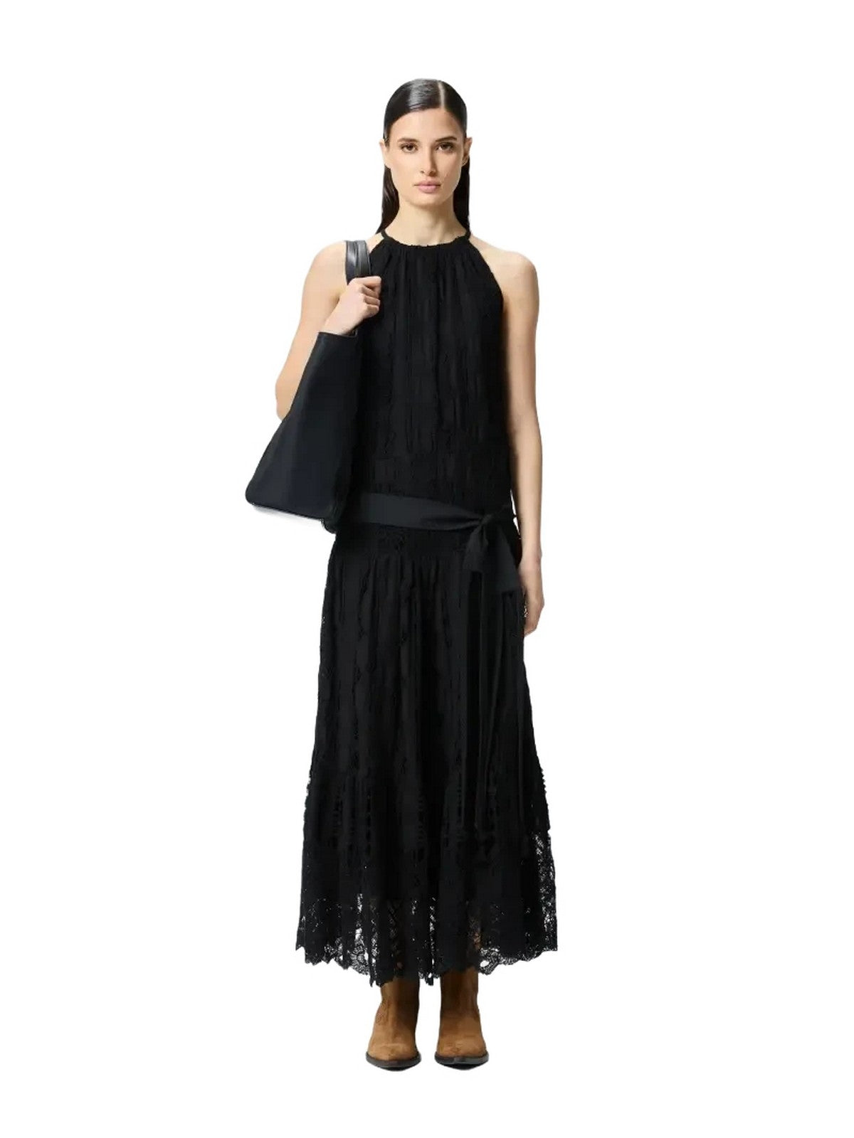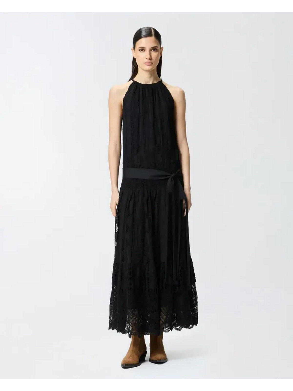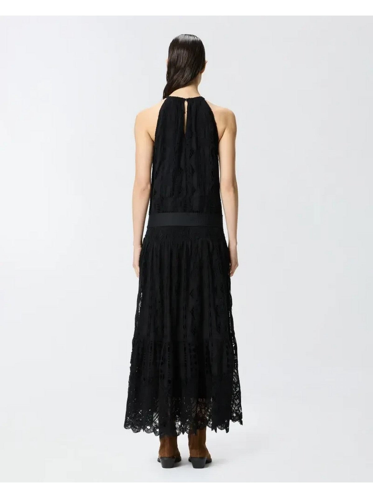 Robes décontractées pour femme Pinko - Robe mi-longue en sangallo et macramé - Noir