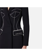 ? dettagli di piping a contrasto ricreano un bustier con effetto trompe-l'oeil