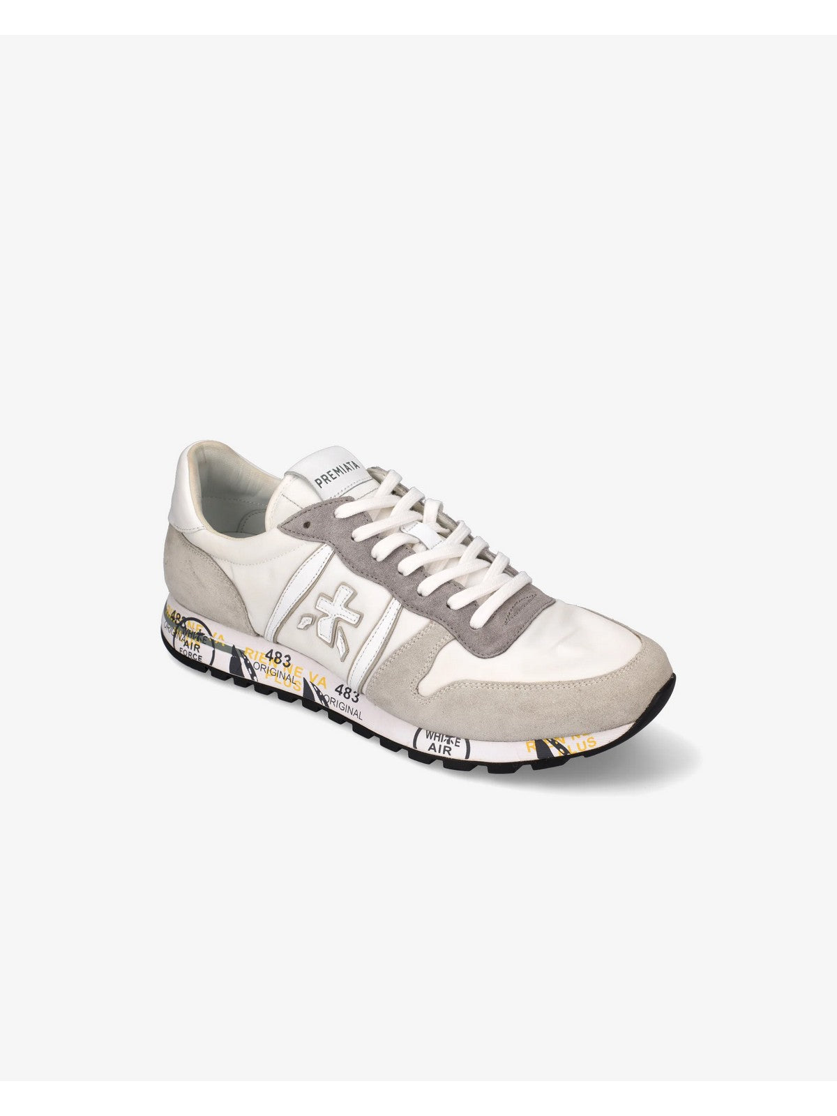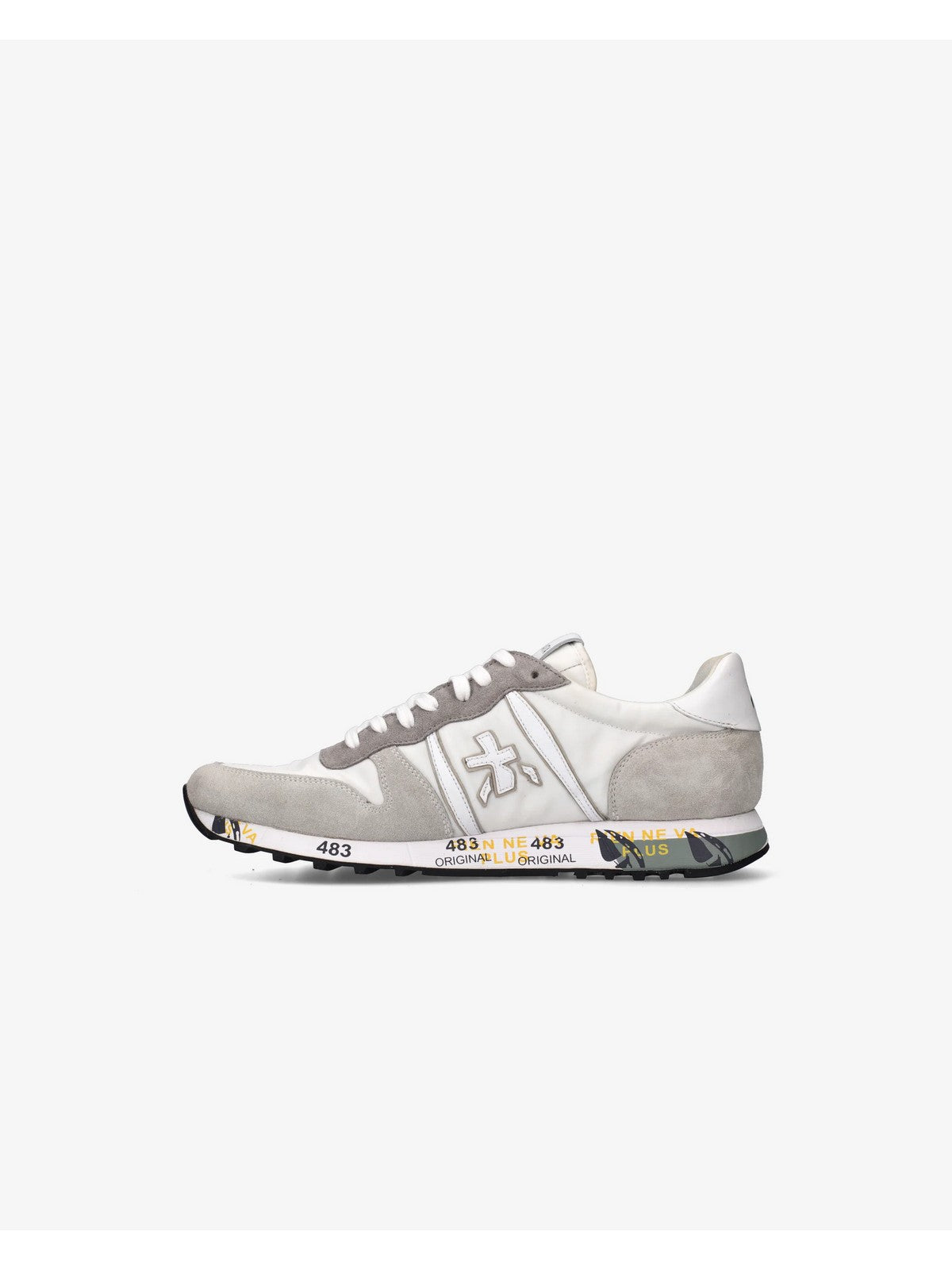 Sneaker PREMIATA stile rétro, leggera e flessibile. Presentata in suede e tessuto chiaro