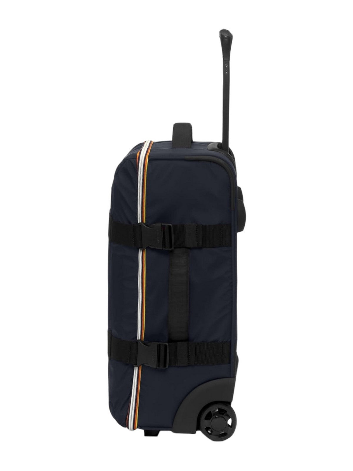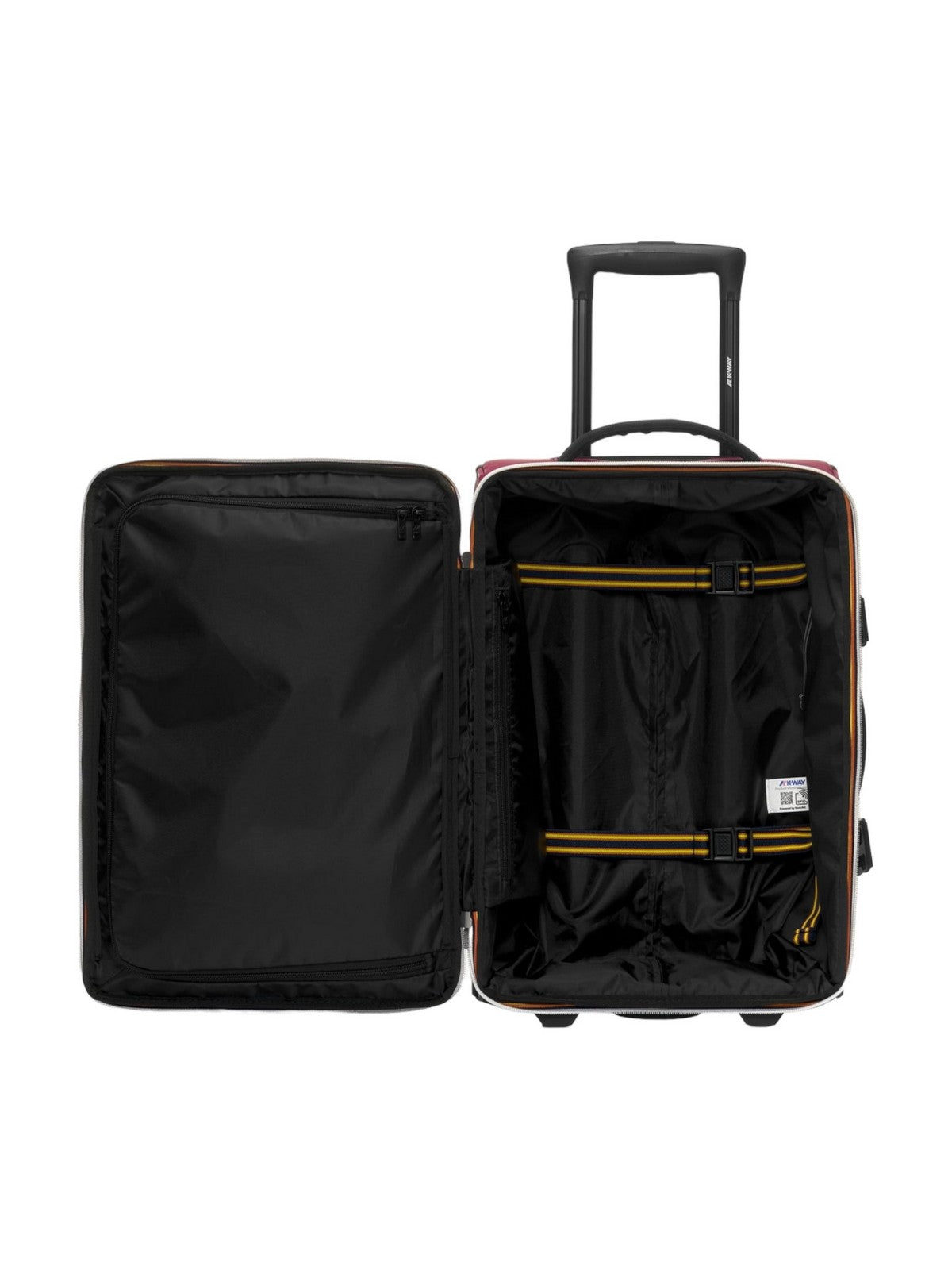 Trolley "Blossac S" K-WAY da viaggio realizzato in nylon ripstop impermeabile, idrorepellente, antivento. Tessuto di rinforzo applicato alla base per una maggiore resistenza. Ha dimensioni perfette per essere trasportato in cabina. L'accessorio presenta quattro ruote che seguono ogni movimento, tasche funzionali per organizzare il contenuto, manico superiore e laterale per la massima versatilità e manico rigido estraibile da tasca posteriore. Chiusura con zip a doppio cursore. Apertura principale con K-Way zip. Regolazione laterale di contenimento. Bustina di riconoscimento agganciabile. Scompartimenti multifunzionali interni. Logo bianco in silicone.