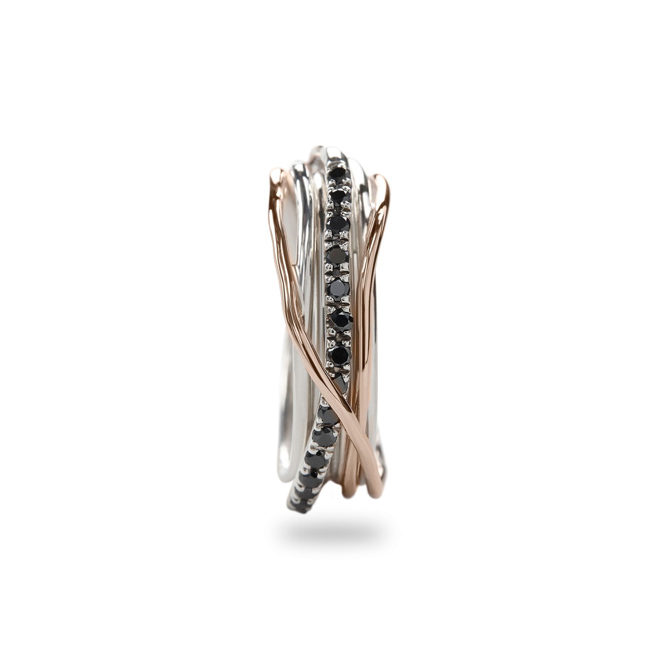 Anello Filodellavita Classic Collection, 7 Fili in Oro Rosa 9kt, Argento .925 e 16 Diamanti Black 0.21 ct