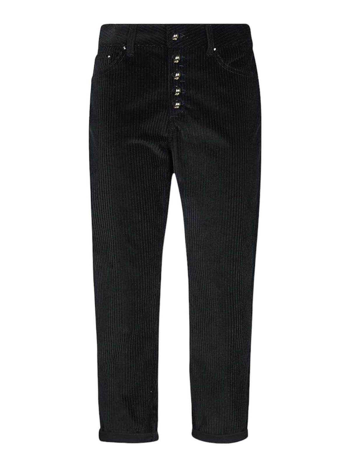 Pantalone DONDUP Koons in velluto. Vita regolare loose fit. Modello cinque tasche. Chiusura con bottoniera gioiello. Lunghezza alla caviglia. Logo Dondup.