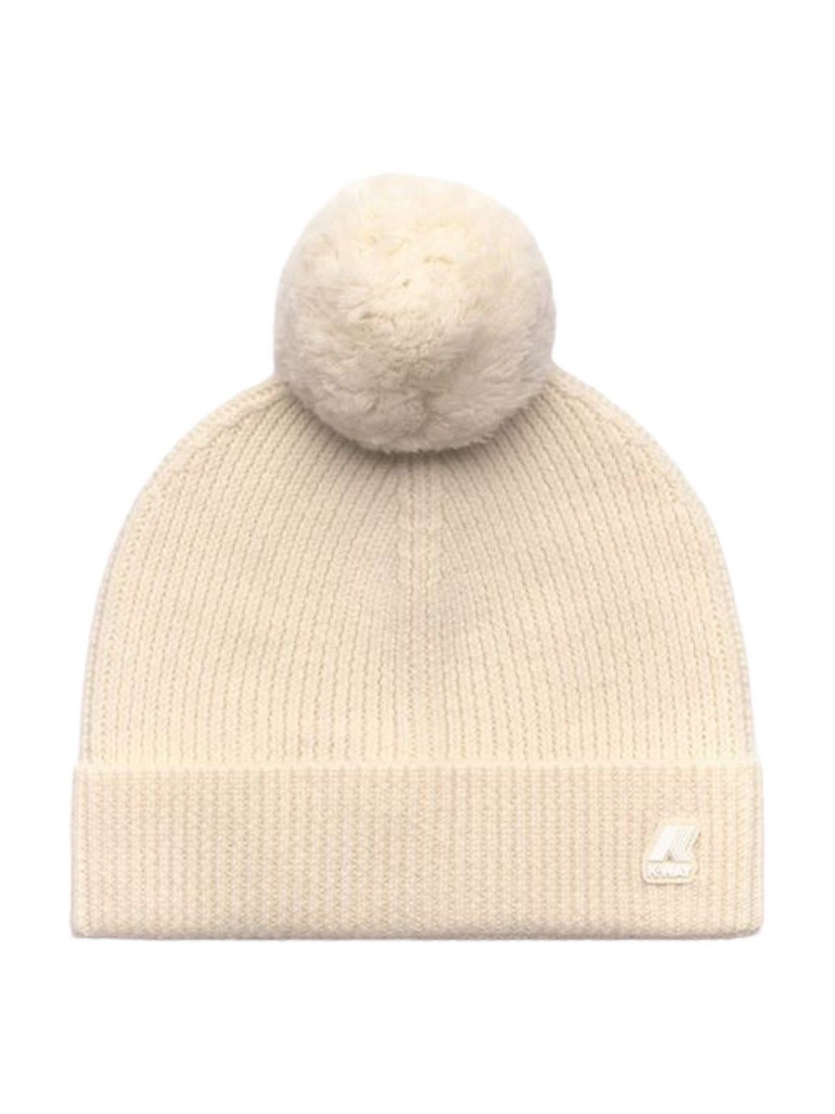 Cappello K.WAY realizzato in misto lana lavorato a costa inglese con pon pon tono su tono e risvolto sulla fronte per una doppia dose di protezione.