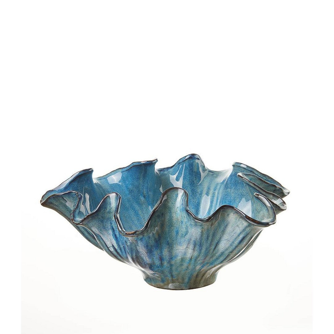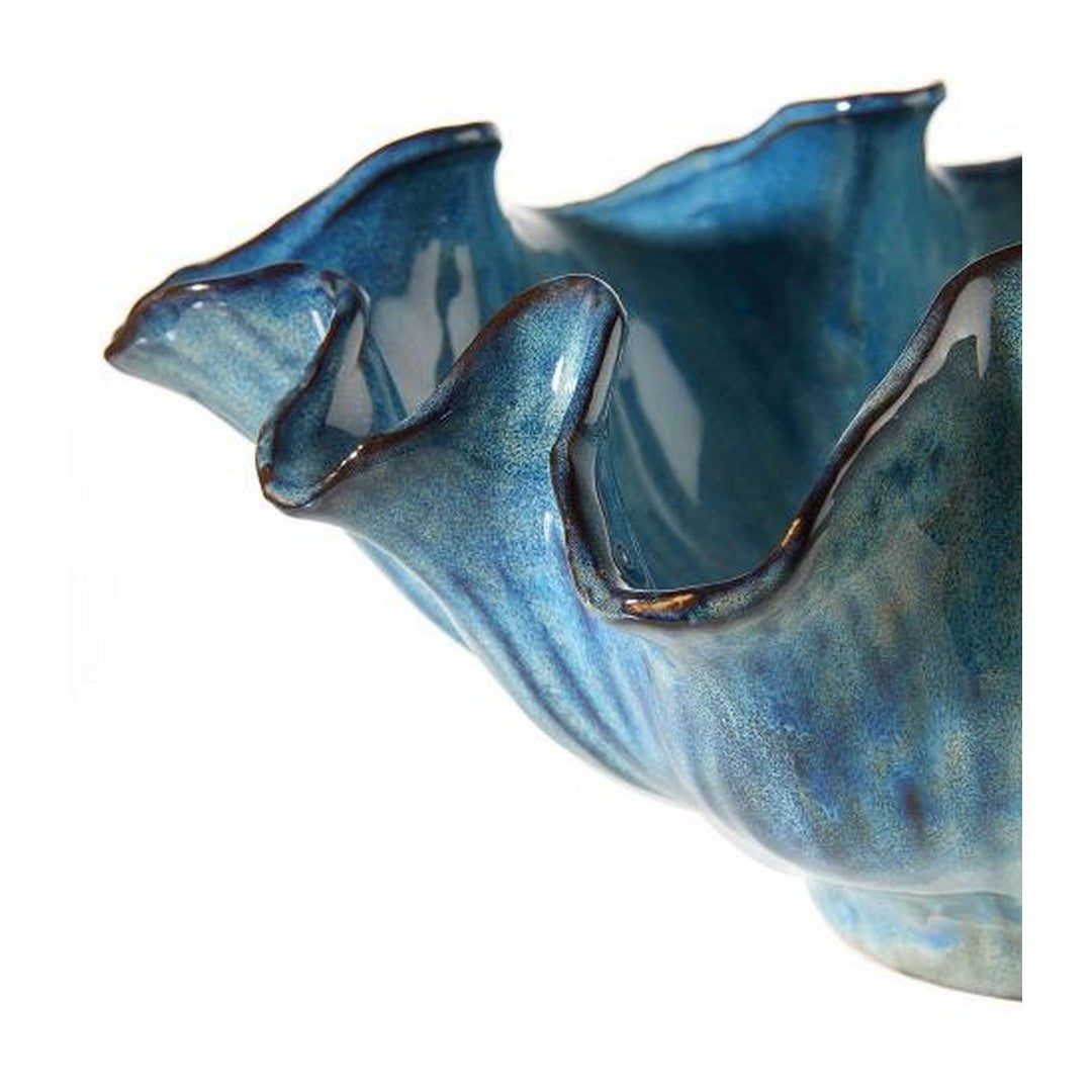 Centrotavola in gres nelle sfumature del blu. Le sue linee si ispirano alle sinuosità del mondo marino per un living che veste di eleganti atmosfere mediterranee.