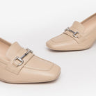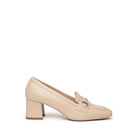 Eleganza e praticità si uniscono in questo mocassino dalla linea raffinata. Il modello E409471D presenta una pregiata tomaia in pelle liscia disponibile in tonalità corda, lino, beige o bianco, impreziosita da un morsetto metallico tono su tono. Il tacco a blocco di 5,5 cm garantisce stabilità e comfort anche per tutta la giornata, mentre la fodera e la soletta in pelle offrono un'ottima sensazione al piede. La suola in gomma antiscivolo rende perfetto questo modello per l'uso quotidiano. Prodotto interamente in Italia, esibisce il tricolore sul battistrada a sottolineare la qualità artigianale made in Italy