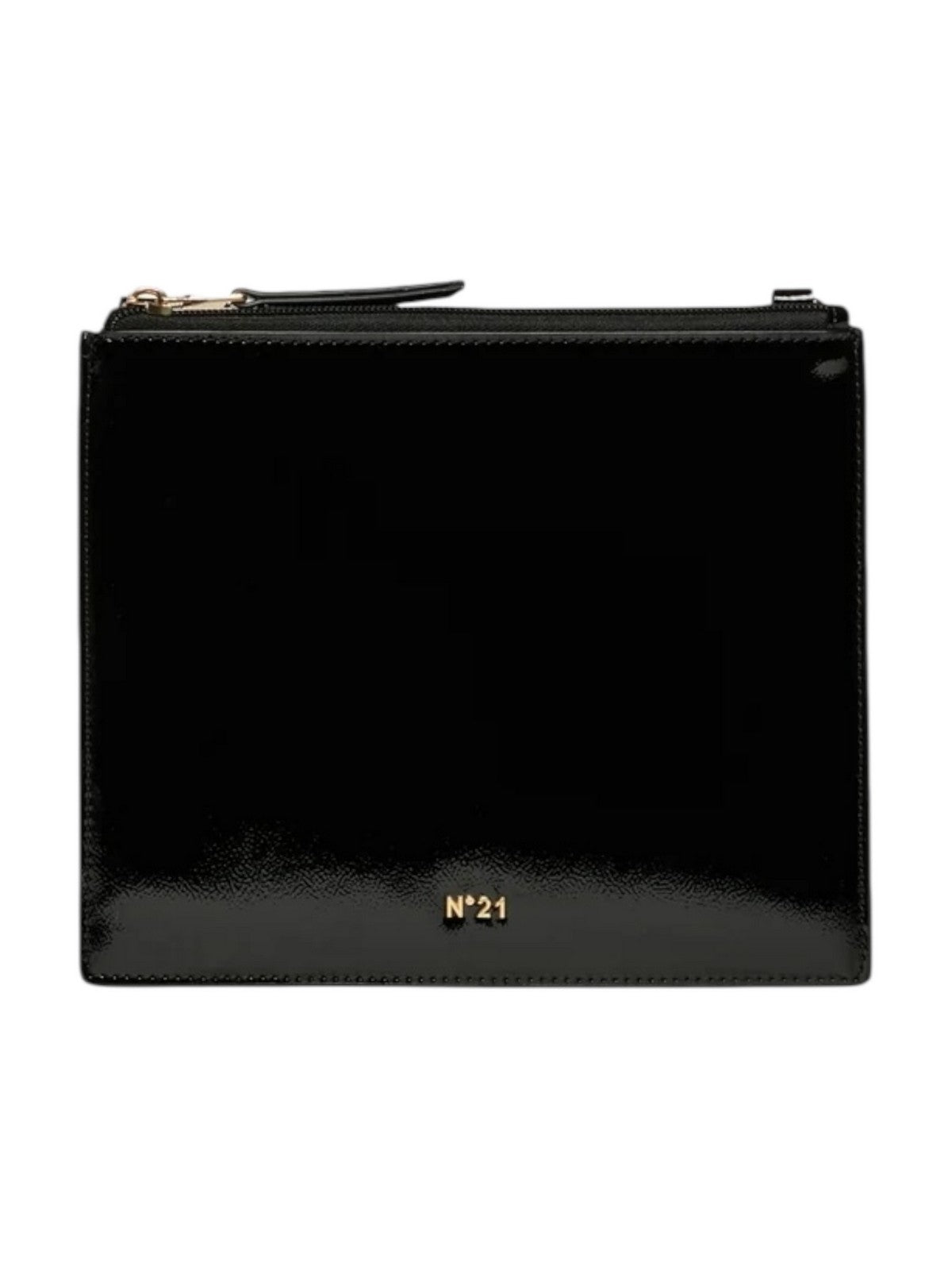 Borsa a busta N°21 in vernice con logo dorato applicato a contrasto.