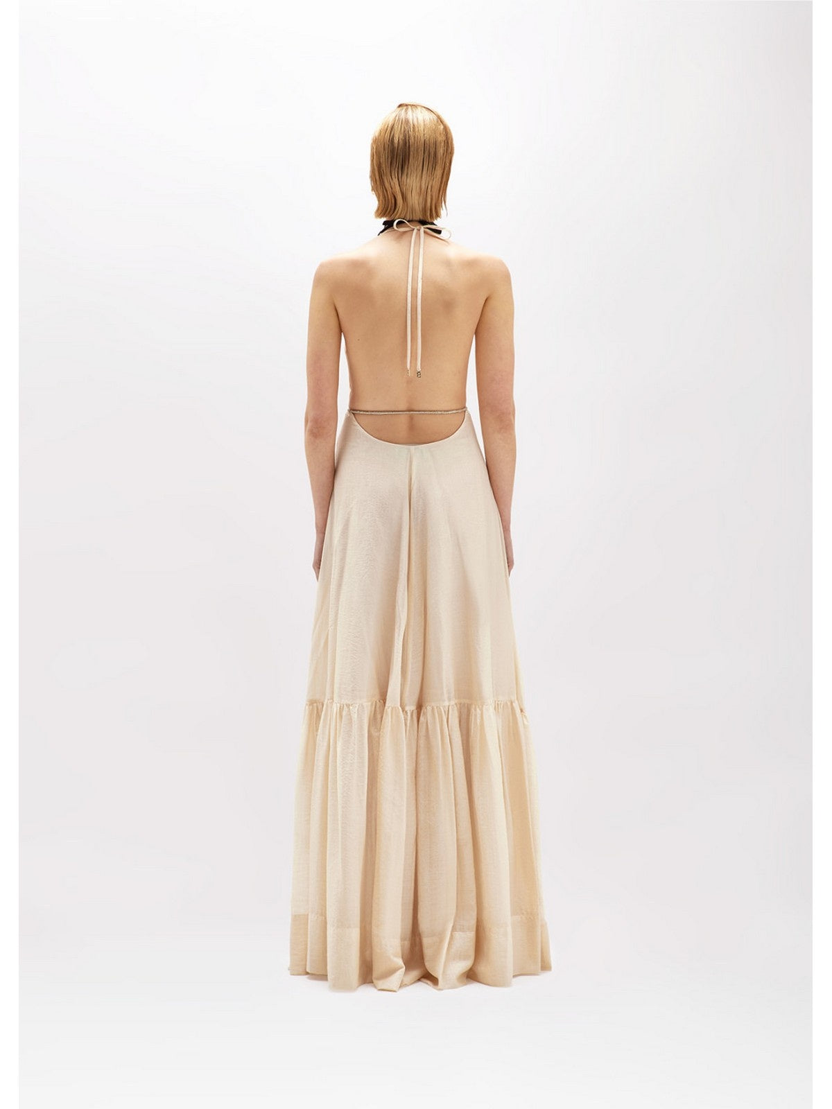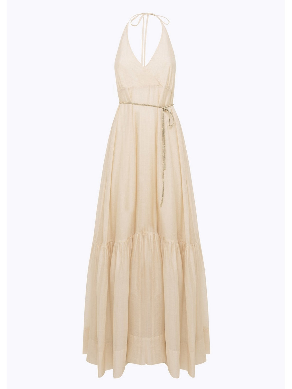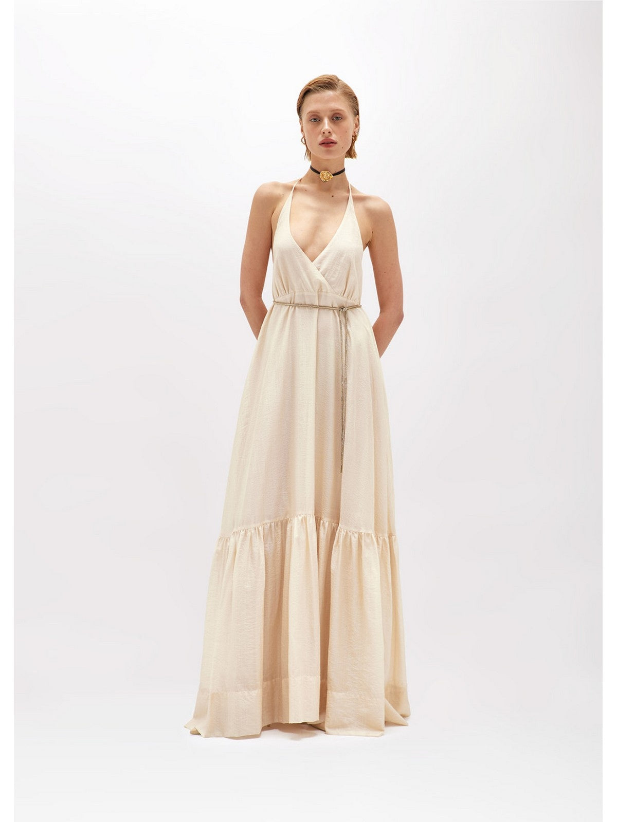 FRESCO E FEMMINILE L'ABITO LUNGO IN TENCEL LEGGERO CON CINTURA IN TUBOLARE DI STRASS RIVESTITA DI TULLE. HA SCOLLO PROFONDO CON INCROCIO DAVANTI, SPALLINE SOTTILI, BALZA ARRICCIATA AL FONDO, SCOLLATURA PROFONDA SUL RETRO, LINEA MORBIDA. PERFETTO PER LE SERE D'ESTATE.COMPOSIZIONE: 80% LYOCELL 20% POLIAMMIDE