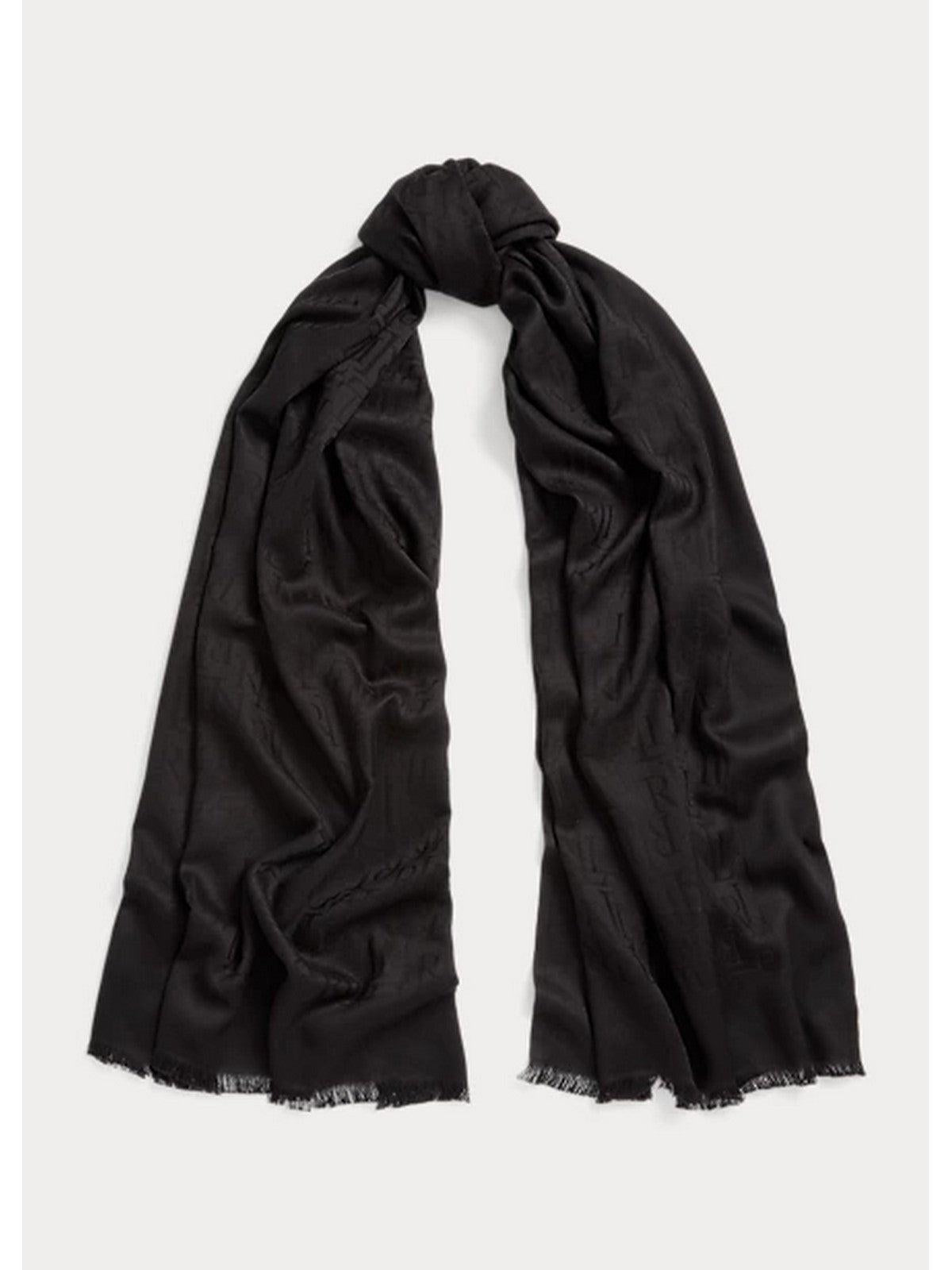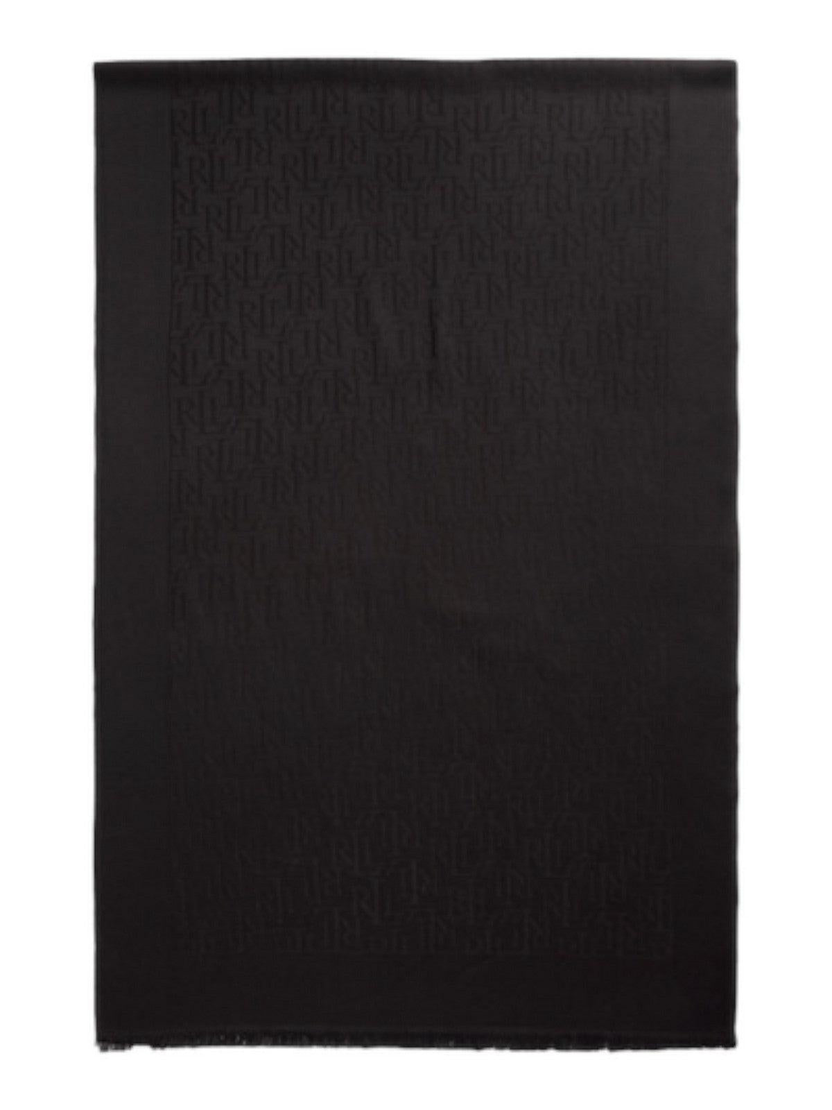 RALPH LAUREN scarf in cotton and modal blend. All-over "LRL" jacquard pattern. Frayed ends.