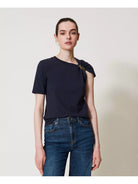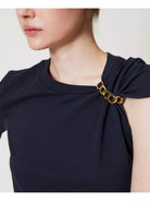 TWINSET cotton jersey T-shirt with removable metal Oval T chain detail that creates gathers